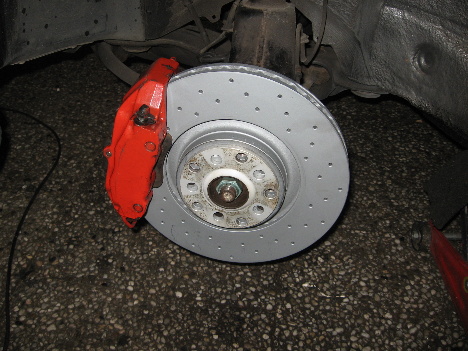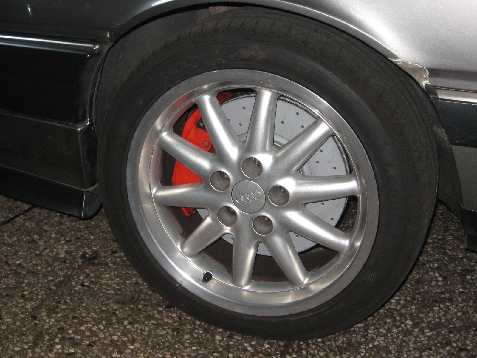 Hallo! Gerade eben den ersten 4-Kolben-Bremssattel (P996) mit S4 B5-Bremscheibe am normalen 10V-Federbein verbaut. Adapter ist von RS2. Die Bremsscheibe ist wie bekannt nach außen versetzt, so dass die inneren Kolben weiter rausstehen werden. Um den Versatz auszugleichen bzw. die Kolben nicht unters...