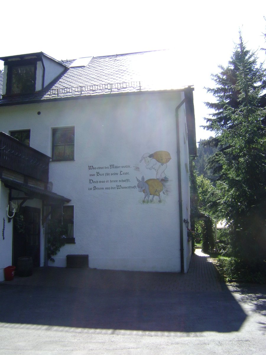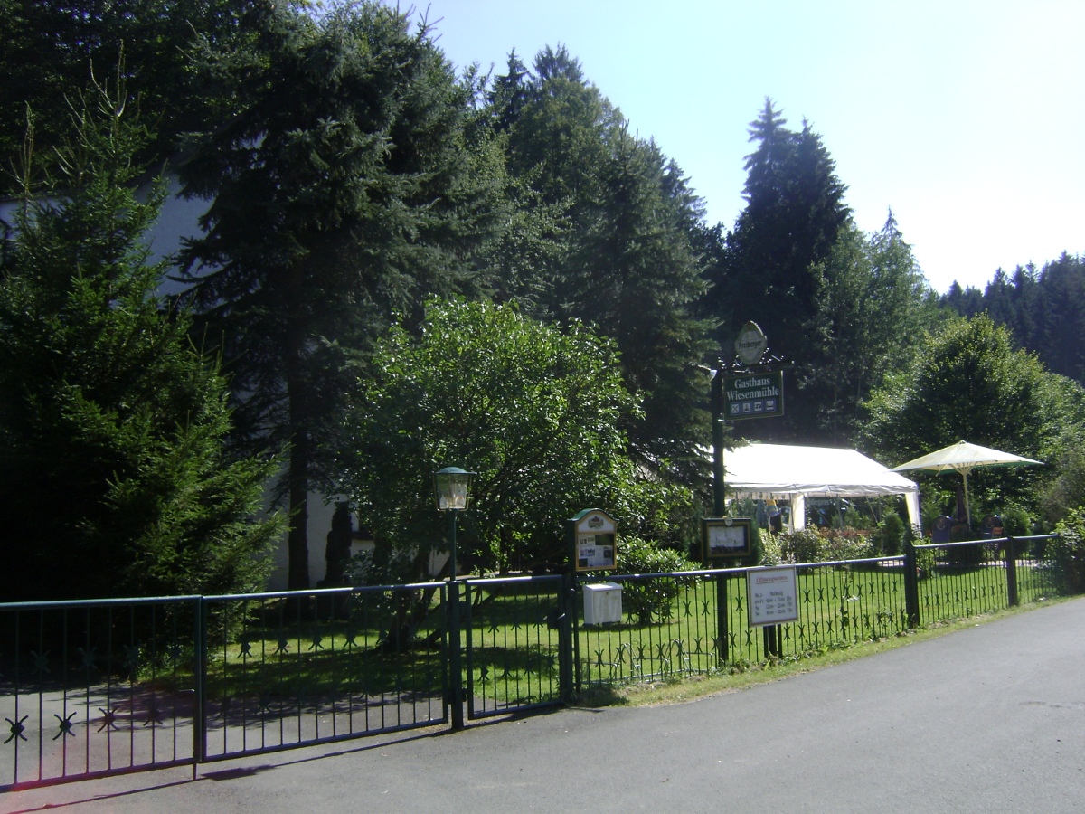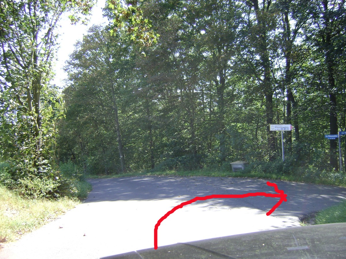 etwa 1,5km nach Ortseingang links einbiegen in die Straße "Zur Wiesenmühle" (siehe Bild)