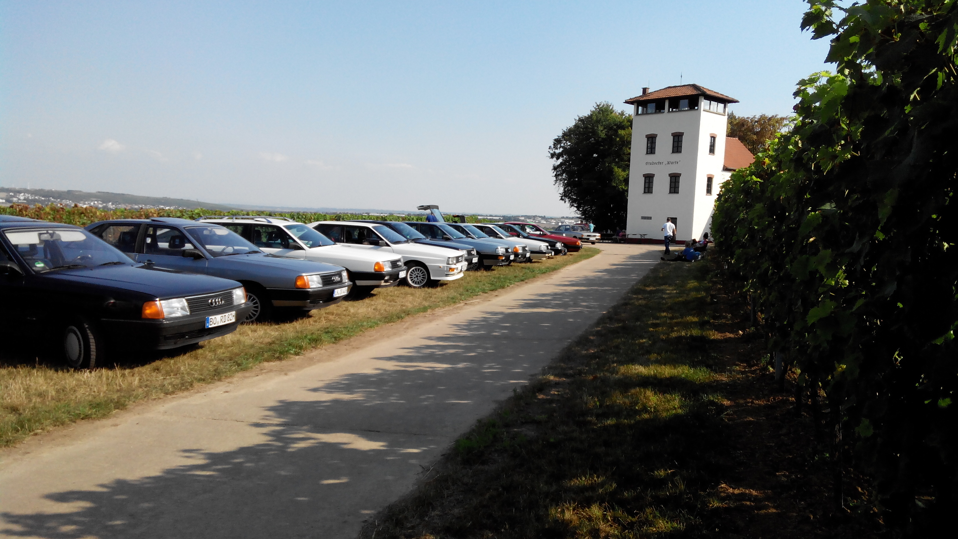 Auf der sogenannten "Stadecker Warte", einer historischen Anlage hoch oben und inmitten der Weinberge gelegen, habt ihr einen sagenhaften Ausblick und könnt ein wunderbares 360° Panorama von Odenwald bis Taunus genießen - oder ihr genießt den Ausblick auf unsere Audis, die auf dem zugehörigen großen Parkplatz in Reih und Glied stehen werden.