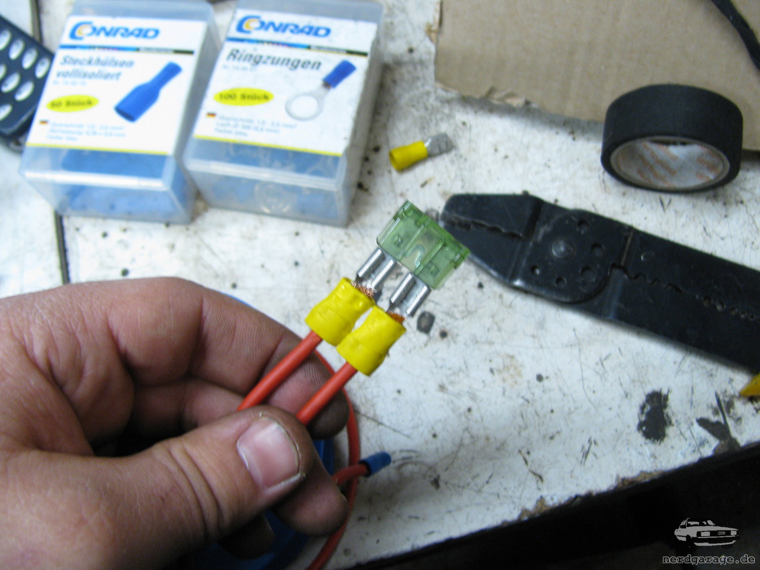 Im Sicherungskasten war bei mir seitlich so eine zusätzliche Sicherungsleiste mit den beiden Motorsicherungen, da waren noch 2 Plätze frei. Um die nutzen zu können hab ich mir diese Flachstecker http://www.ebay.de/itm/161856905254?_tr ... EBIDX%3AIT besorgt.