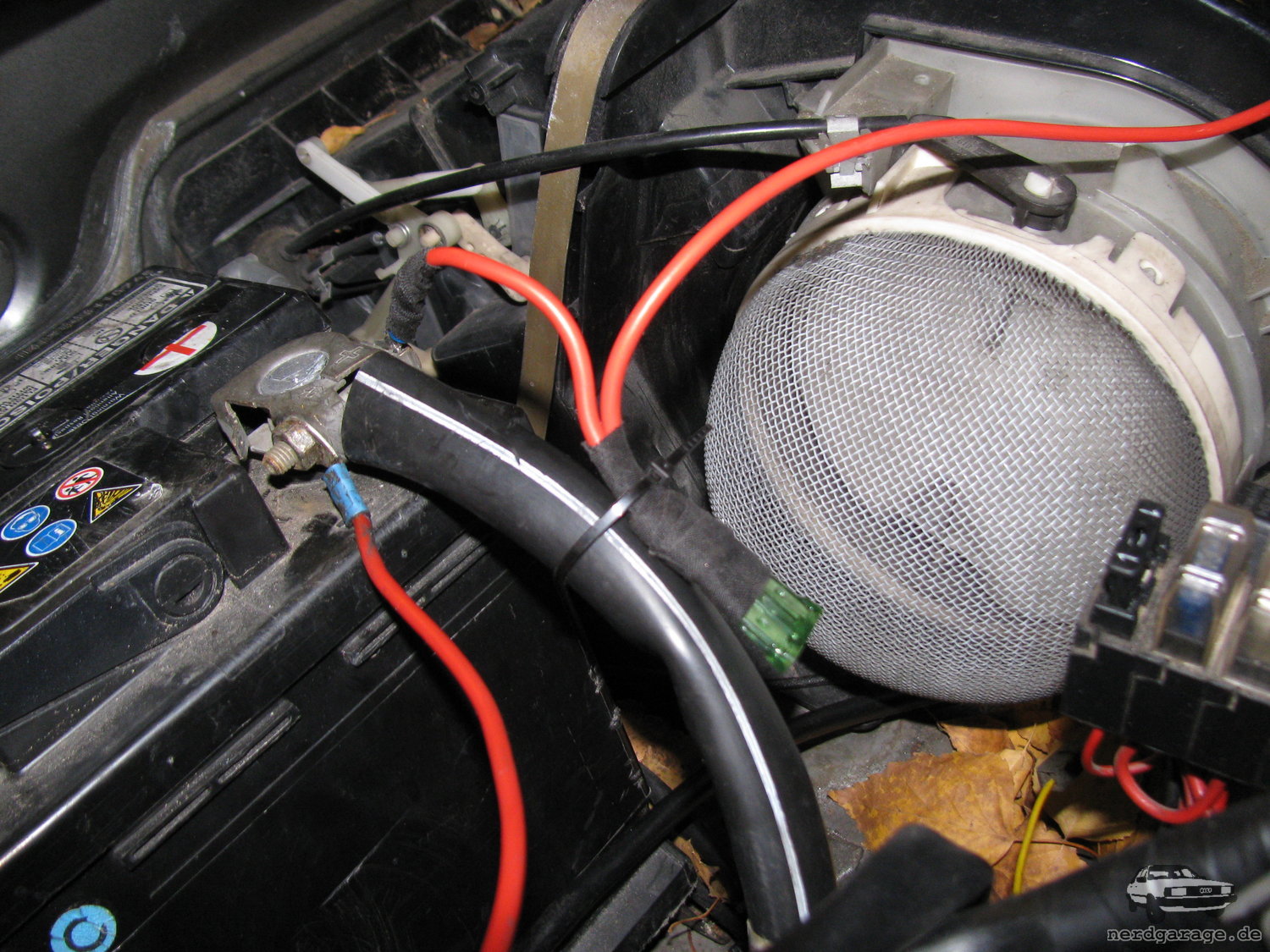 - 1. Fliegende sicherung mit kurzem kabelstück direkt an die Batterie hängen: Dafür gibts fertige sicherungshalter, oder du steckst einfach 2 Kabelschuhe auf die Sicherung drauf. Ist dann etwas mehr gefummel die Sicherung auszutauschen wenn's notwendig werden sollte, aber in der Regel gehen die ja nicht kaputt solange kein defekt vorliegt. Oder man mist gebaut hat.