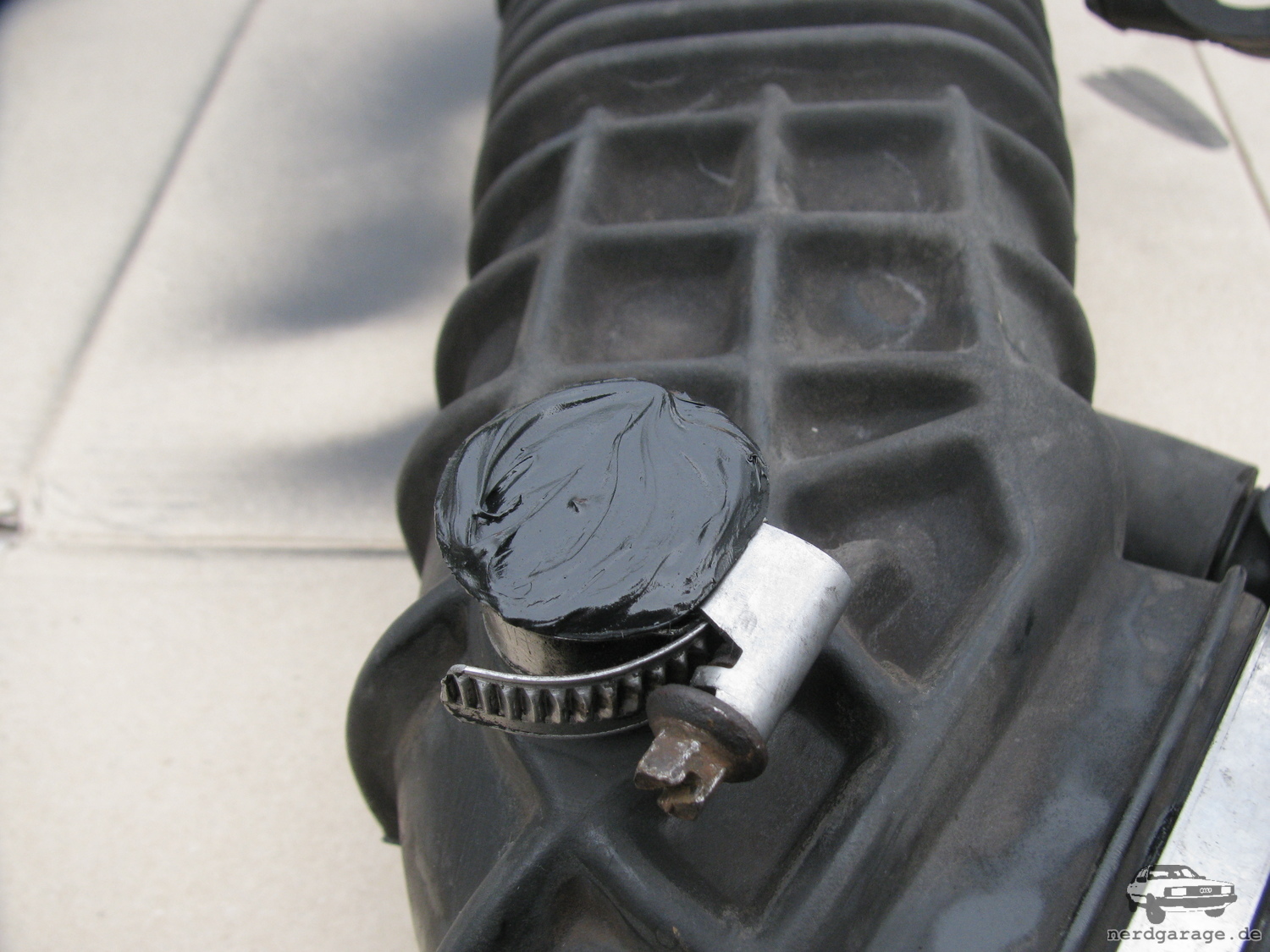 Rohr vom abscheider zum Luftfilterkasten - mal sehen wie lange der Dosenlack dort hält.
