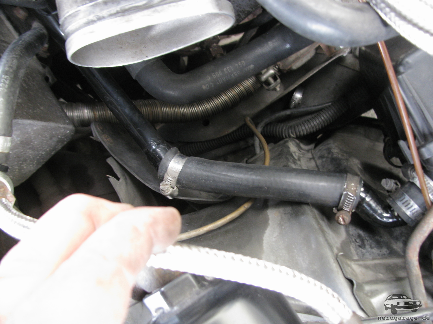 Abgesehen davon hatte ich bei meinem NF den kaugummi-entlüftungsschlauch bereits durch das Metall-rohr 054103227A ersetzt, das hier auch leicht modifiziert weiterverwendet wird.