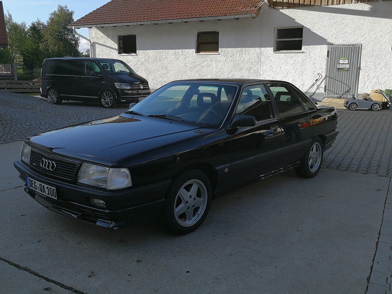 Audi 100 Quattro NF (Geradkantler), EZ 07/1989, brillantschwarz mit Kamei-Spoilersatz (orig. eingetragen 1989). Ist jetzt mein dritter alter Audi (Typ 81 Coupé und Typ 89 Cabrio sind auch noch da).