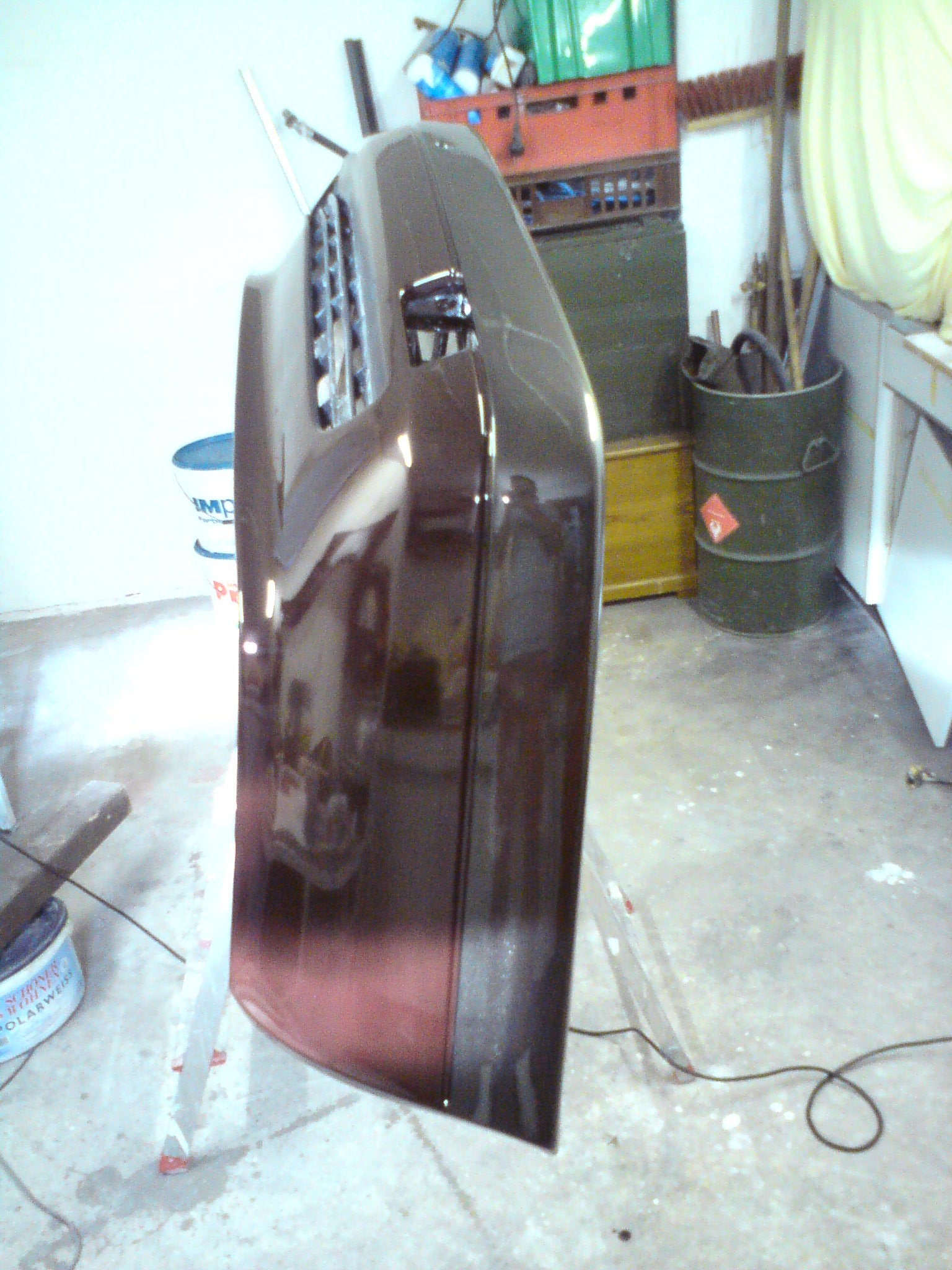 alles Schwarz wieder weg war und dann halt den roten Lack(original VW Wasserlack) gespritzt.