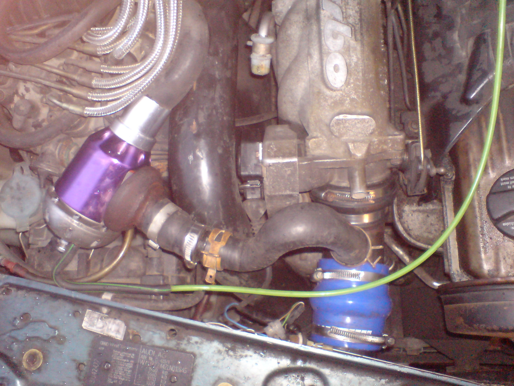 Werd den Blow Off Abgang aber mal unterhalb des Rohres anbringen, dass es besser versteckt ist. Wär dann auch besser wenn er unterhalb ist, weil man dann das 20VT Blow Off geschlossen fahren könnte und es dann dadurch auch leichter wird, die herausgeblasene Luft wieder vor den Turbo zu leiten!!!