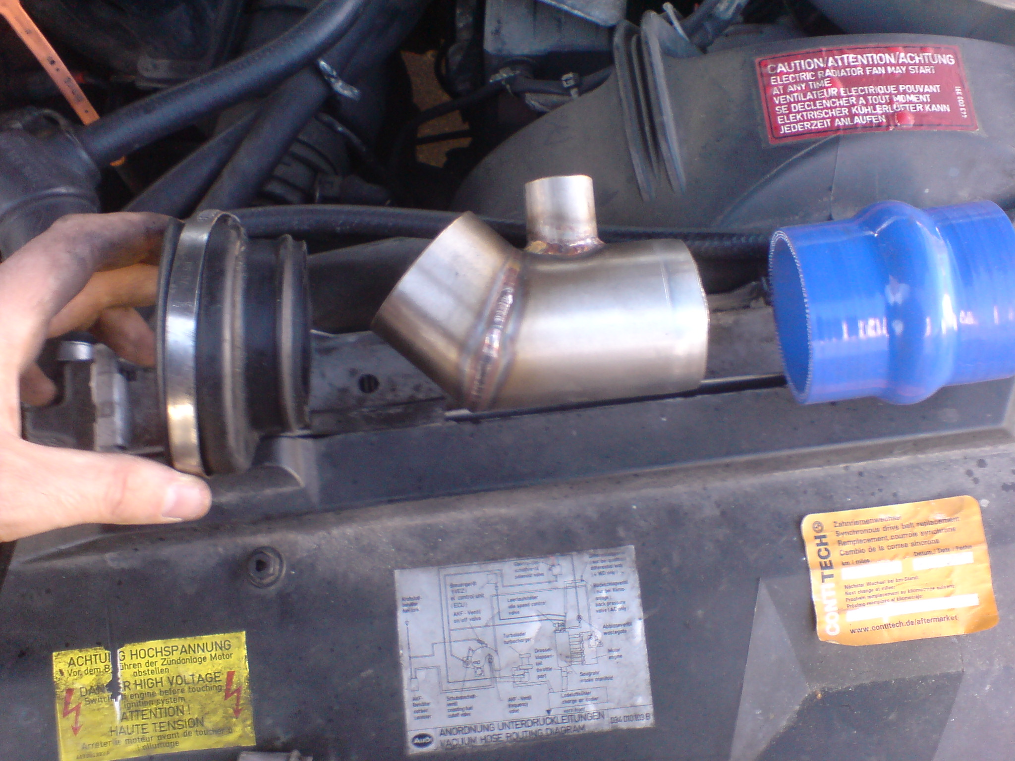 im 3B will ich es auch noch so umbauen, dass es weiter vor der DK sitzt mit einem Abgang im Druckrohr. So ein Rohr mit angeschweißtem Abgang habe ich bereits schon liegen.