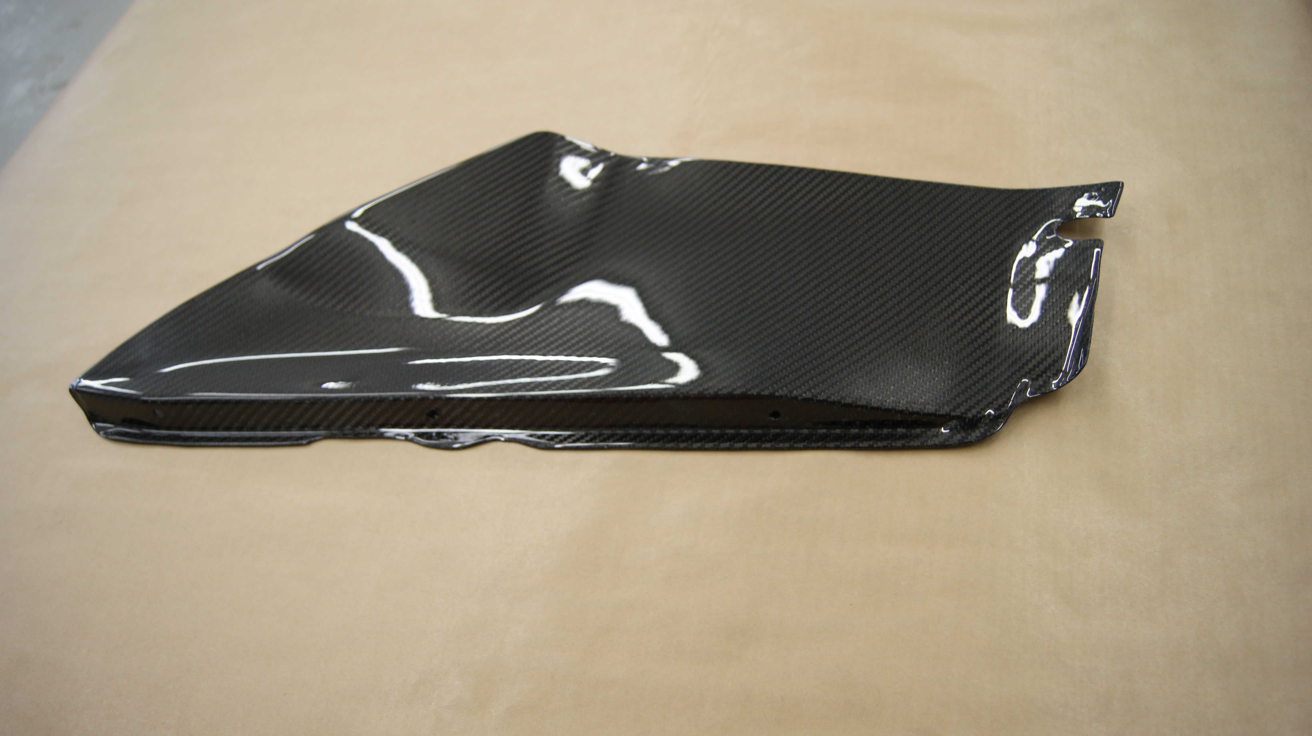 Momentan haben wir eine veränderte Wasserkühlerabdeckung aus Carbon und aus Kevlar/Carbon gefertigt und eine Zahnriehmenabdeckung für das große verstellbare Nockenwellenrad mit der Hallgeberaufnahme.