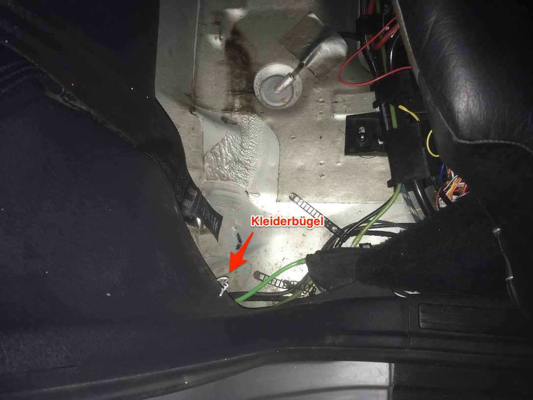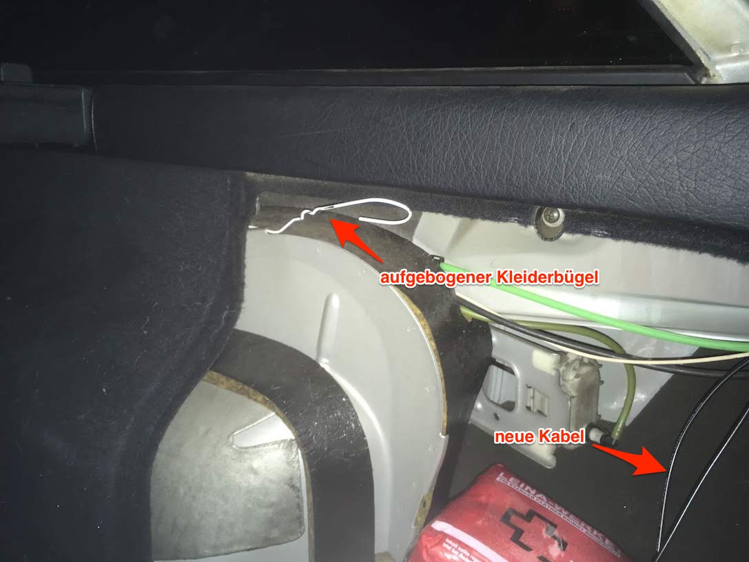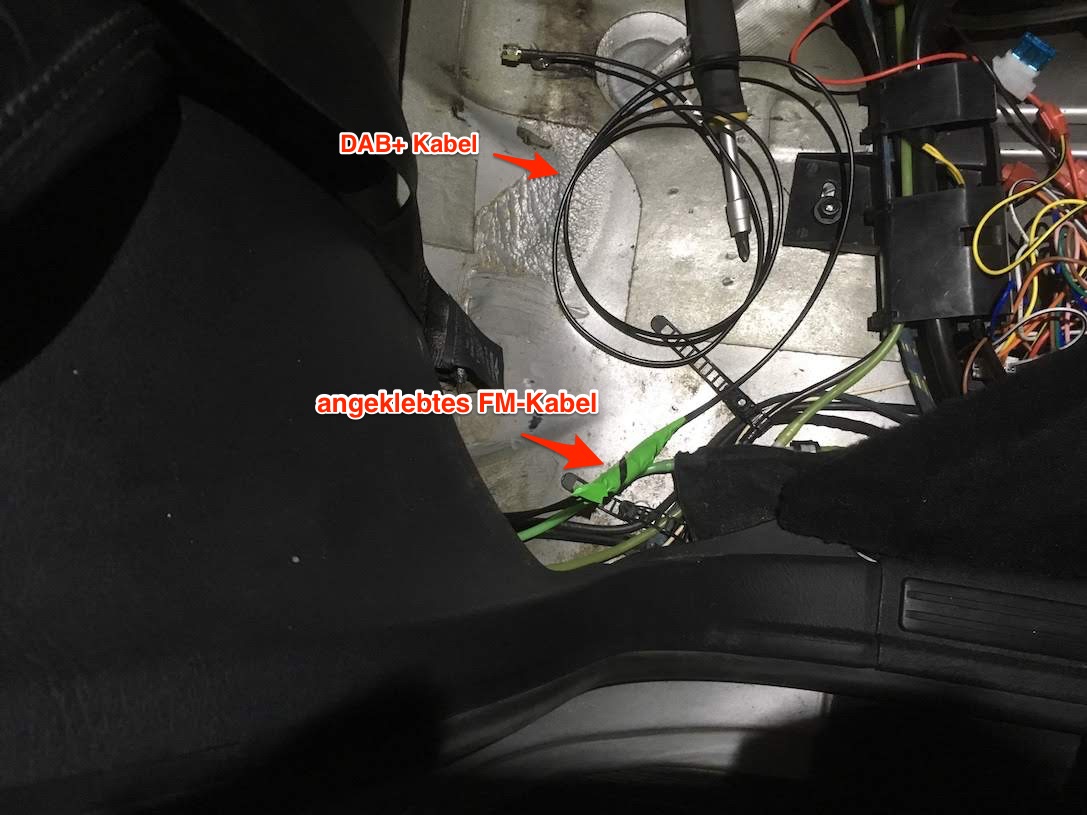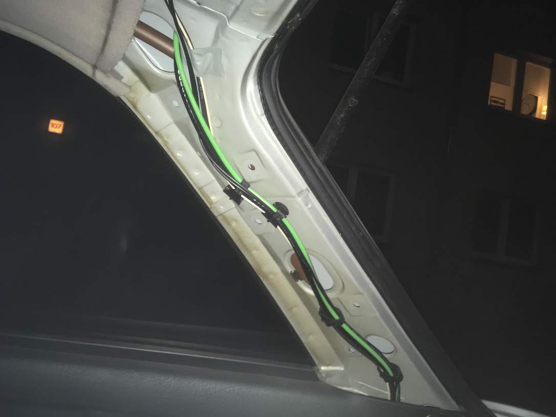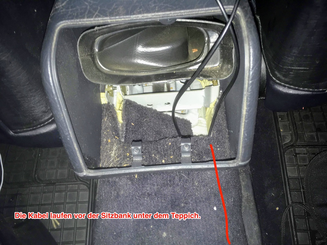 Antennenfuß über dem Kofferraumlicht: D-Säule Beifahrerseite: Beifahrerseite, zwischen C- und D-Säule: Unter der hinteren Sitzbank (hier ausgebaut), Beifahrerseite: Mit Kabeln: