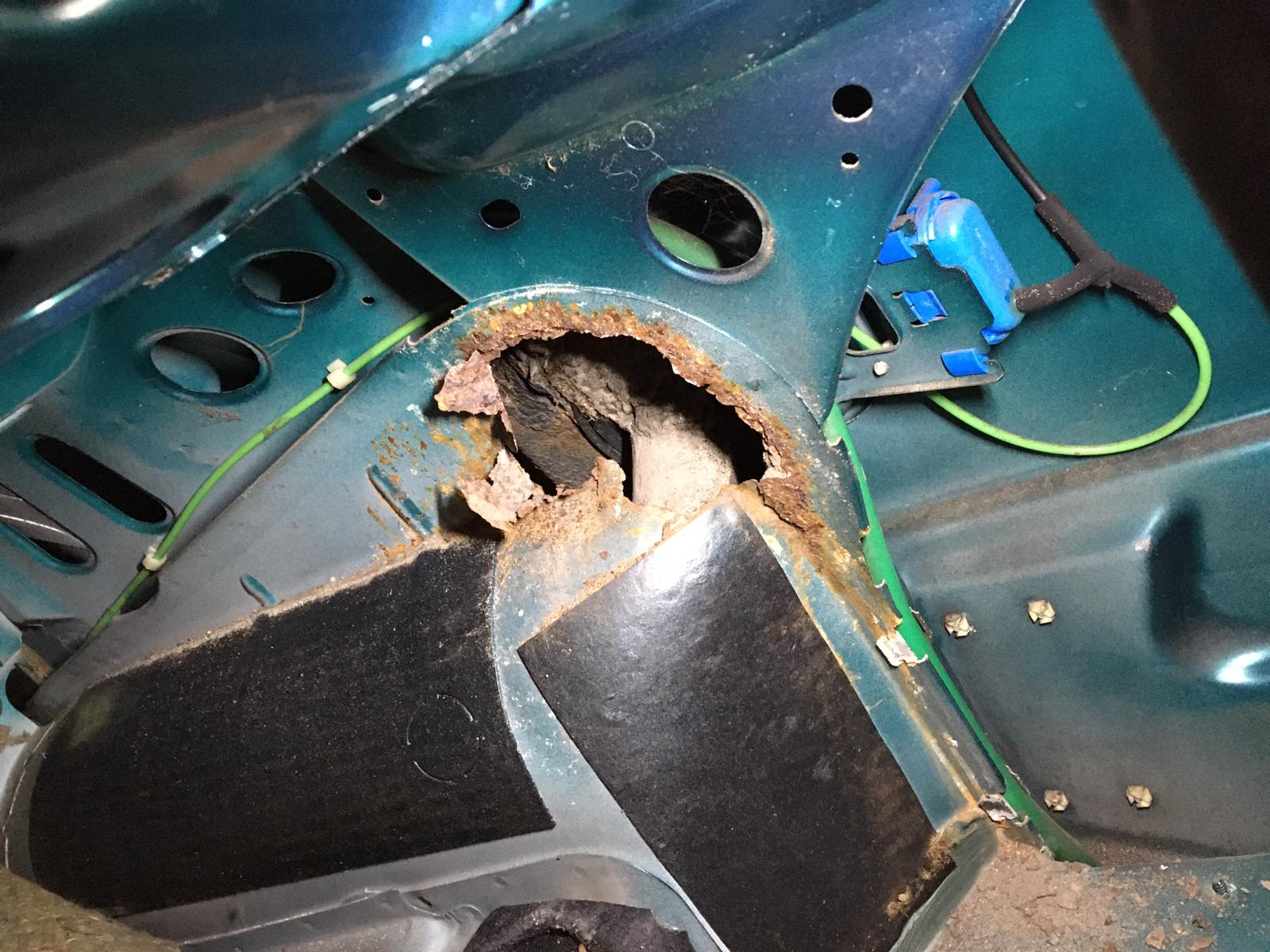 Mein C4 hat an einer Stelle, an der ich nicht damit gerechnet hätte, ein fettes Rostloch. Im Radhaus hinten rechts ganz oben am Tankeinfüllstutzen und zum Kofferraum hin. Dort hat sich wohl über die Jahrzehnte soviel Dreck und Modder gesammelt, dass es dort Stück für Stück durch gegammelt ist. Ich habe an der Innenseite den Kofferraumteppich entfernt und das Blech dort ist einfach nur noch Streuselkuchen.