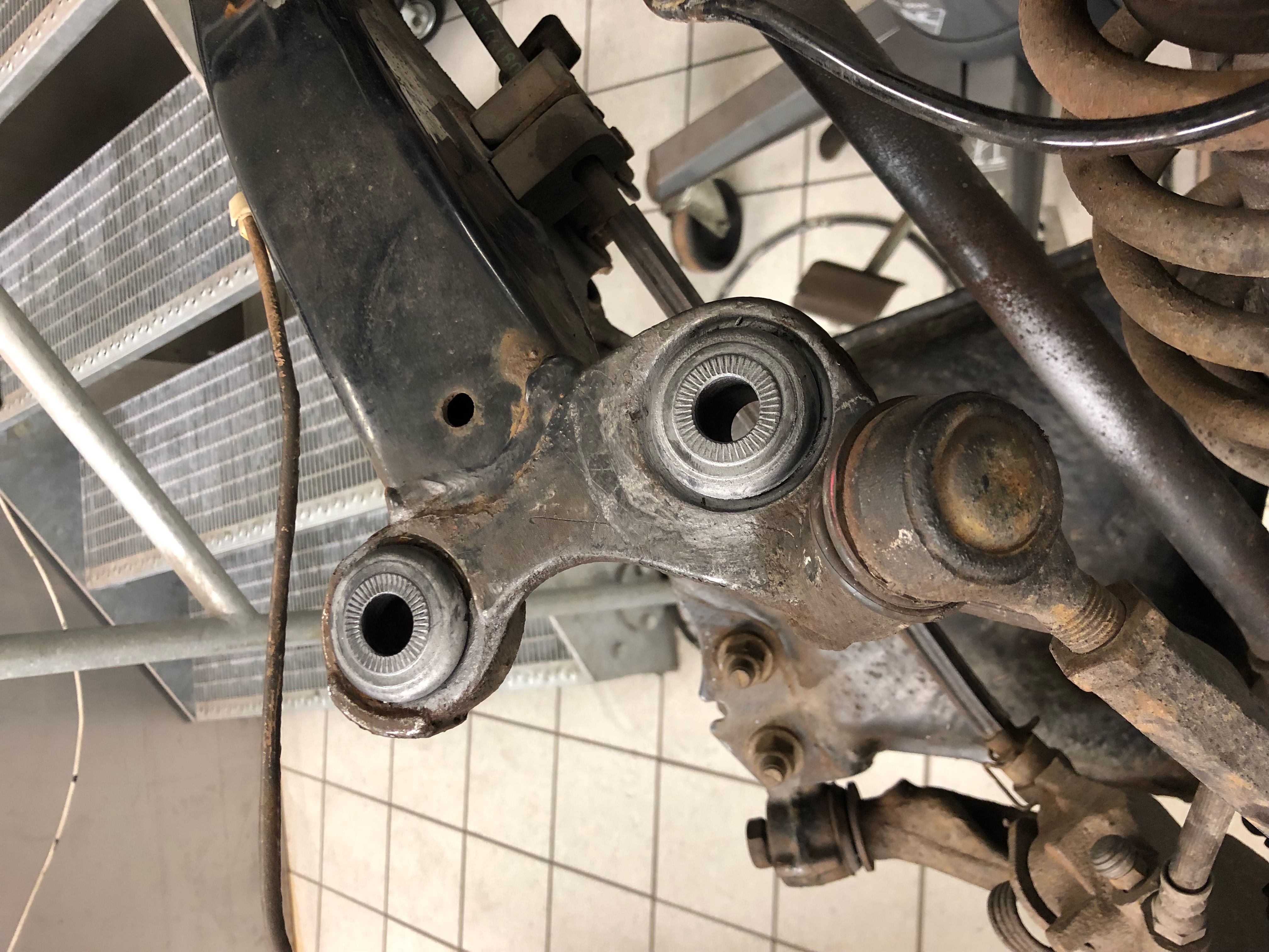 Hallo zusammen, da ich gerade dran bin den Rost zu machen und dazu den Tank und die HA ausgebaut habe wollte ich noch die 4 Lager von der Quertraverse ersetzen. Habe die alten auch schon raus war echt eine richtige harte Arbeit dazu habe ich den Gummi oben herum weggeschnitten so gut es geht und dann mit Hülsen und einer Gewindestange habe ich es rausgezogen obwohl der Ring blieb drin und habe es nicht mal gemerkt zuerst, da richtig rost.