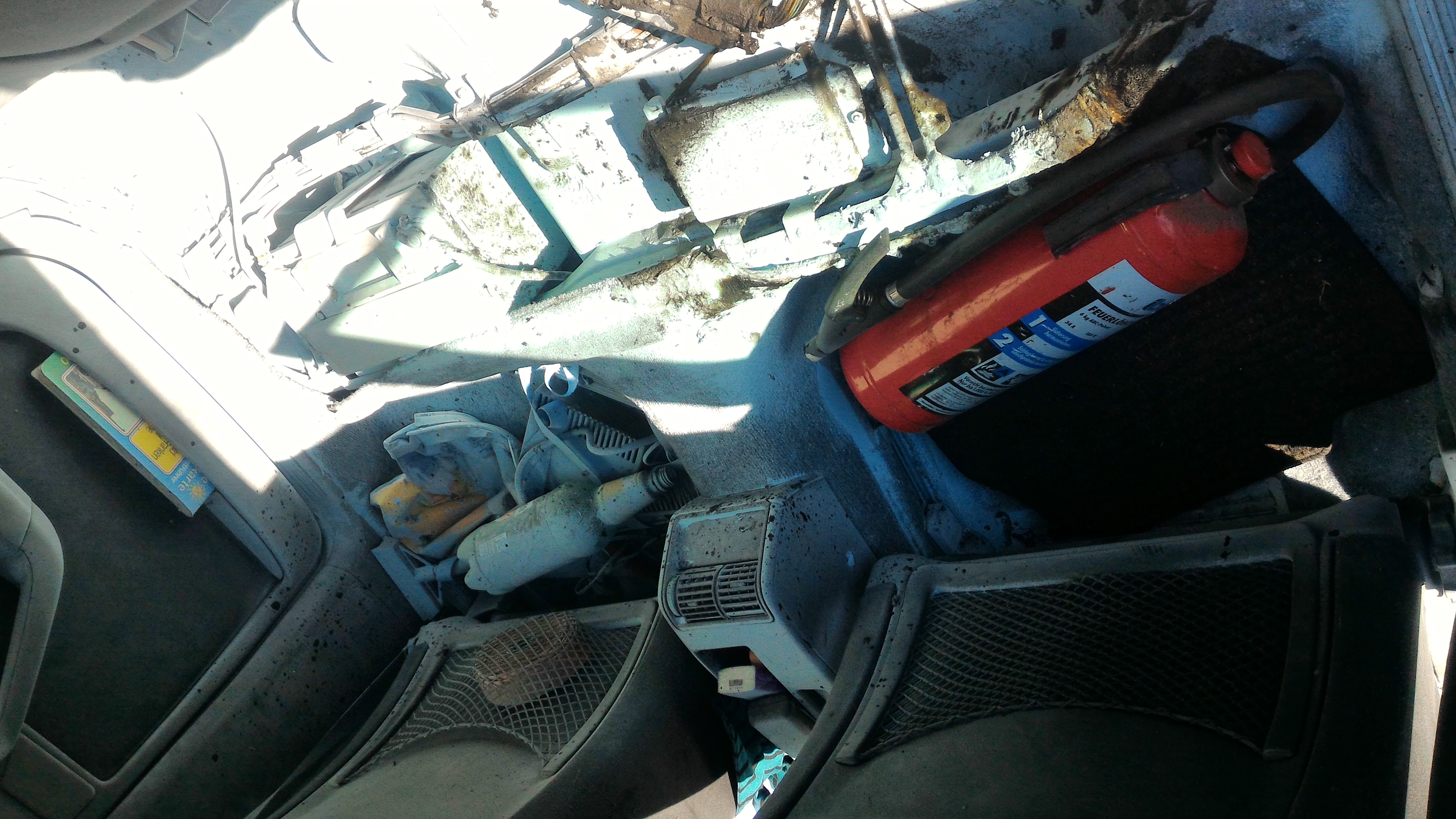 So, der Wagen ist jetzt Innen wieder so, dass ich da drin arbeiten kann ohne das ich aussehe also ob ein Feuerlöscher explodiert sein.