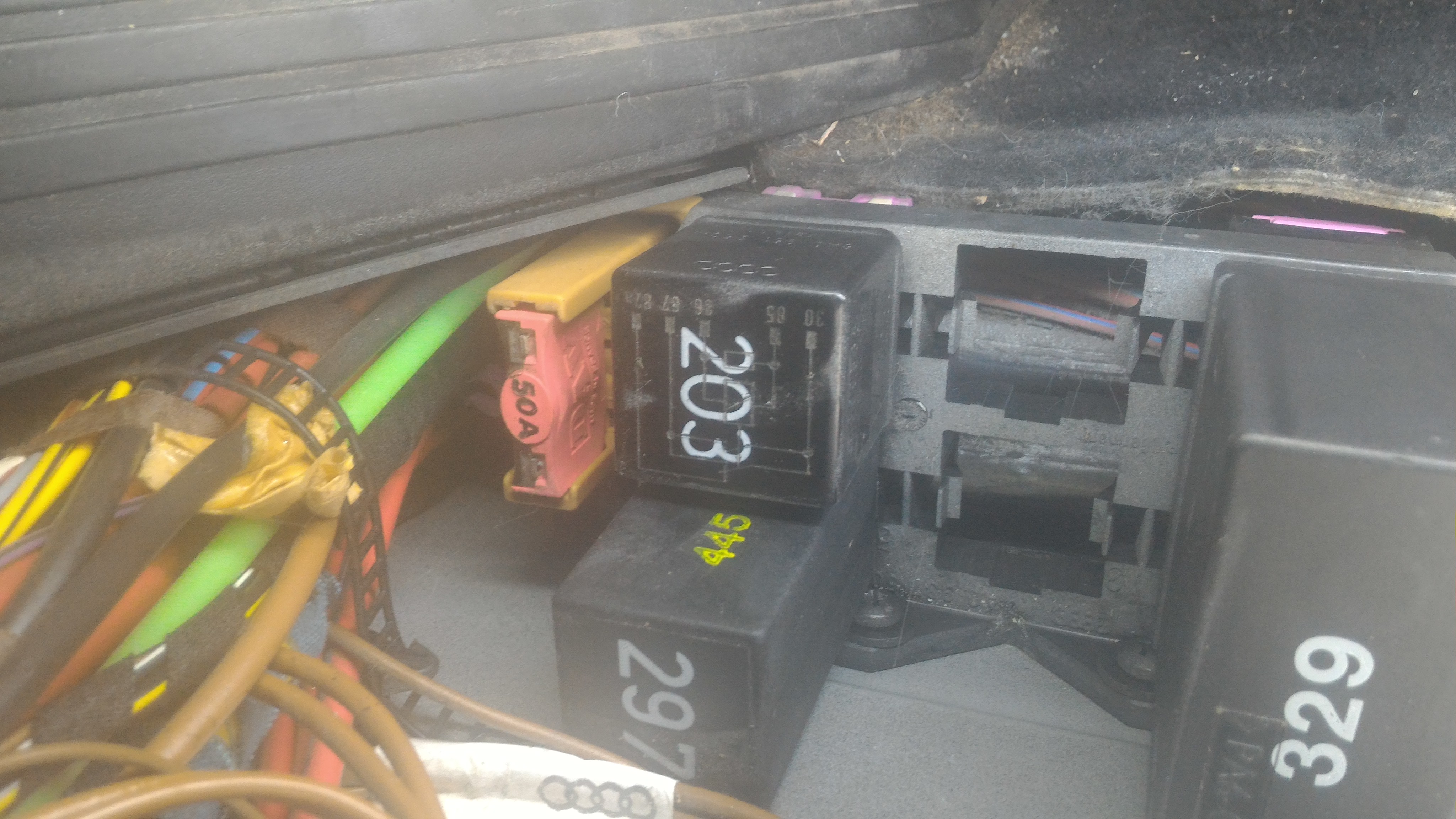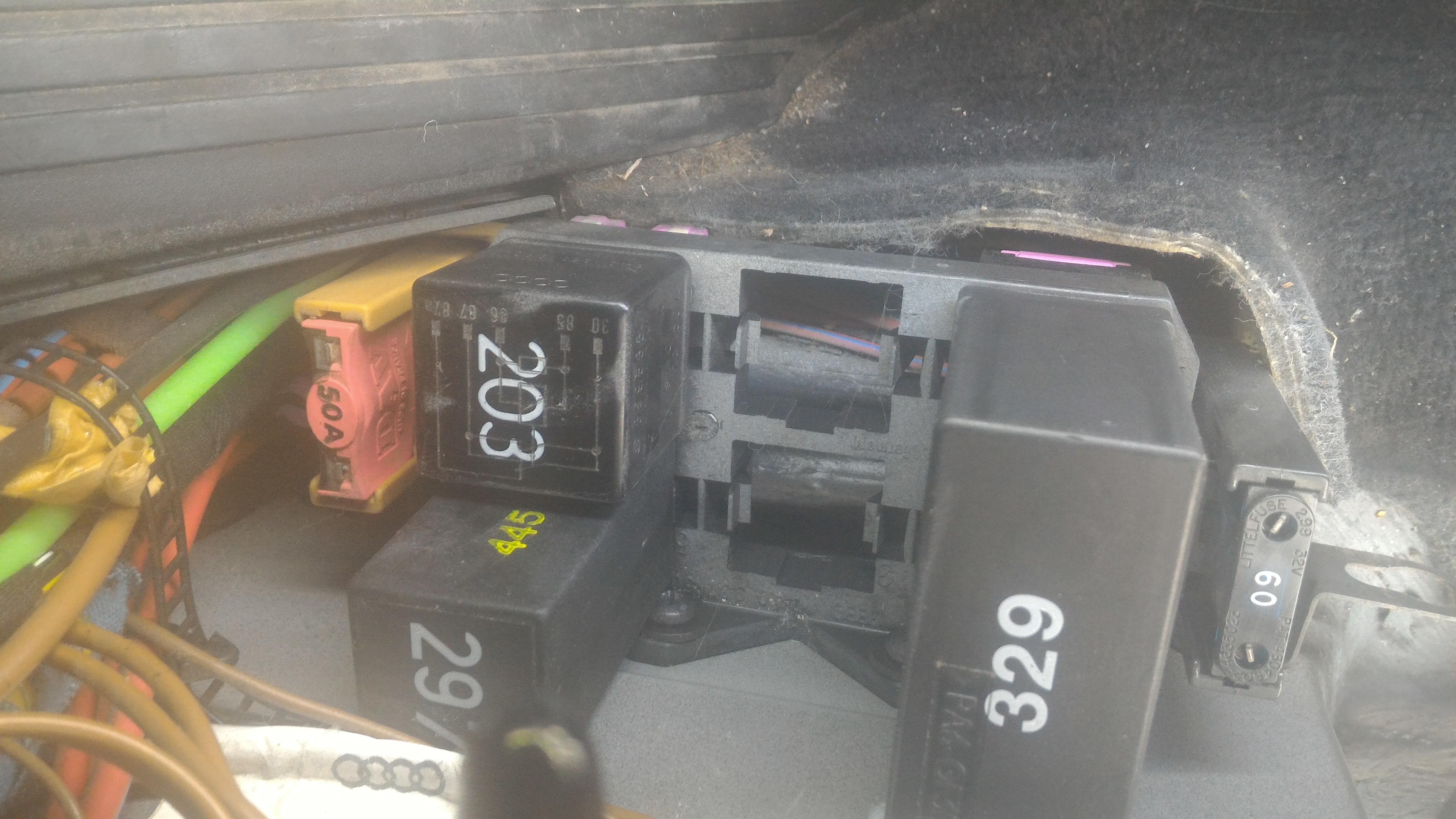 Eventuell sind auch noch Spannungsversorgungs-Relais an der rechten A-Säule.