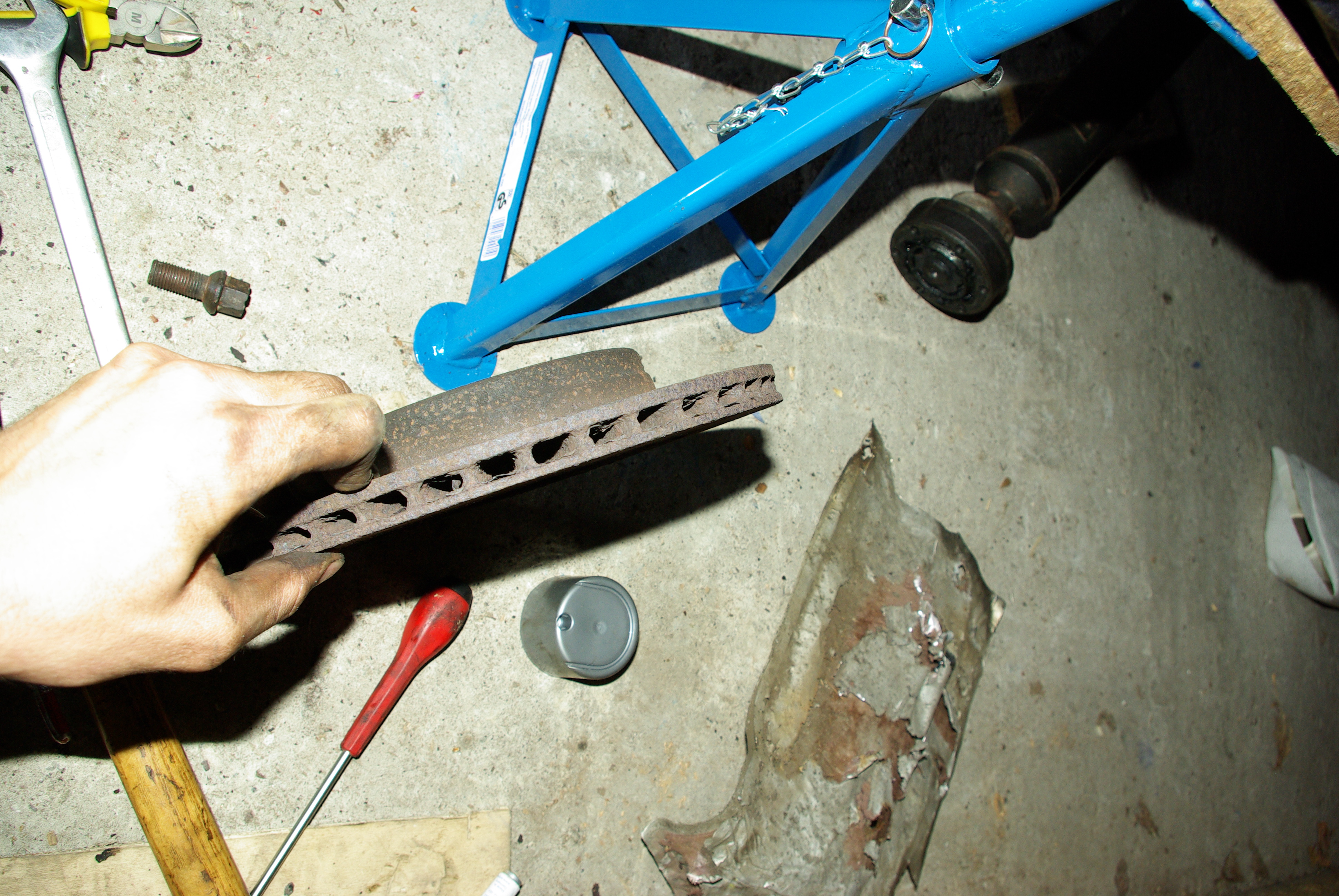 Festgegammelt wunder mich auch gar nicht, die Sättel sind übelst rostig, wie ungefähr alles an der Hinterachse. Mal schaun was mich gleich erwartet, wenn ich den Tank raus baue...