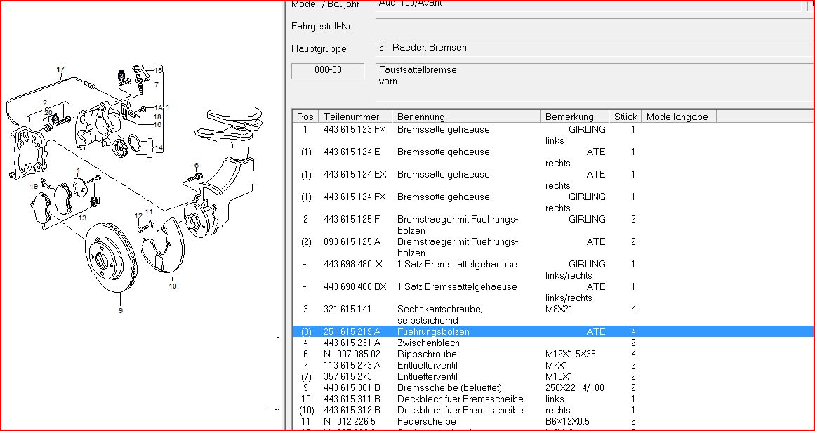 Für die ATE-Bremse hatte Audi das Teil als Ersatzteil, bei Girling muß man den kompletten Träger tauschen, was eine Werkstatt wohl auch machen würde :wink: .