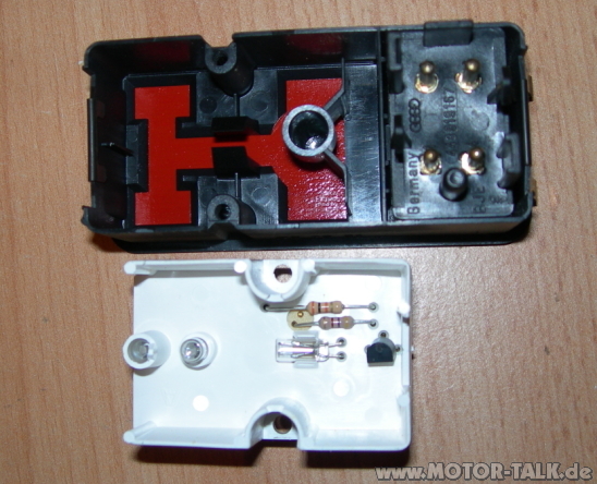 wollte die Beleuchtung des Diff-Sperrenschalters wieder instandsetzen, also die beiden Lämpchen (für die Beleuchtung des Feldes) ausgelötet und neue eingelötet