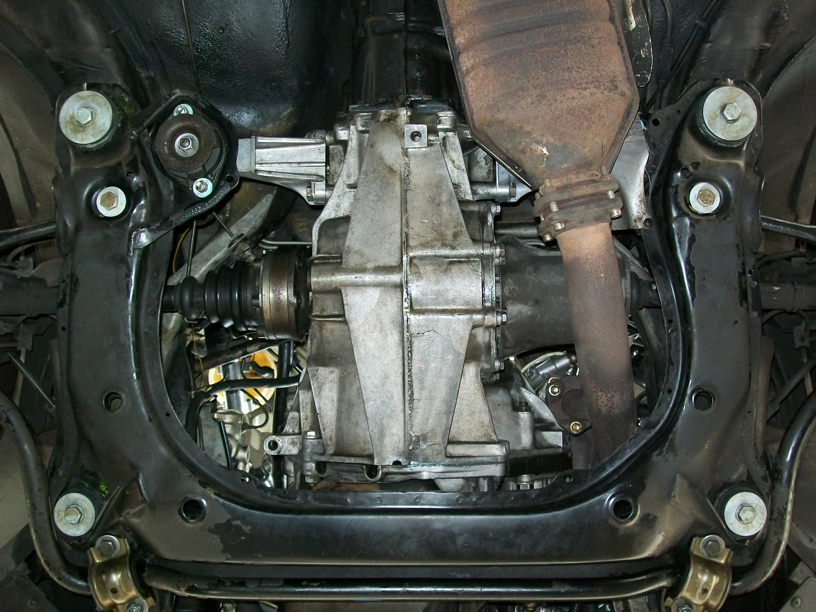 - An den hinteren Gummilagern vom Hilfsrahmen ebenfalls grössere/dickere U-Scheiben vom D-Chassis verbaut, zwecks besserer Dämpfung und verringerter Bewegung im Gummilager.