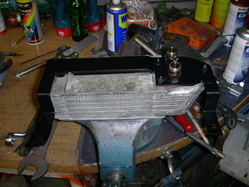warum nehmt ihr nich einfach einen unversellen Racimex/Mocal Kühler und laßt euch von einem Hydraulikfuzzi ein paar Schläuche pressen? Ein passender Halter ist doch dann auch recht schnell selber gemacht...