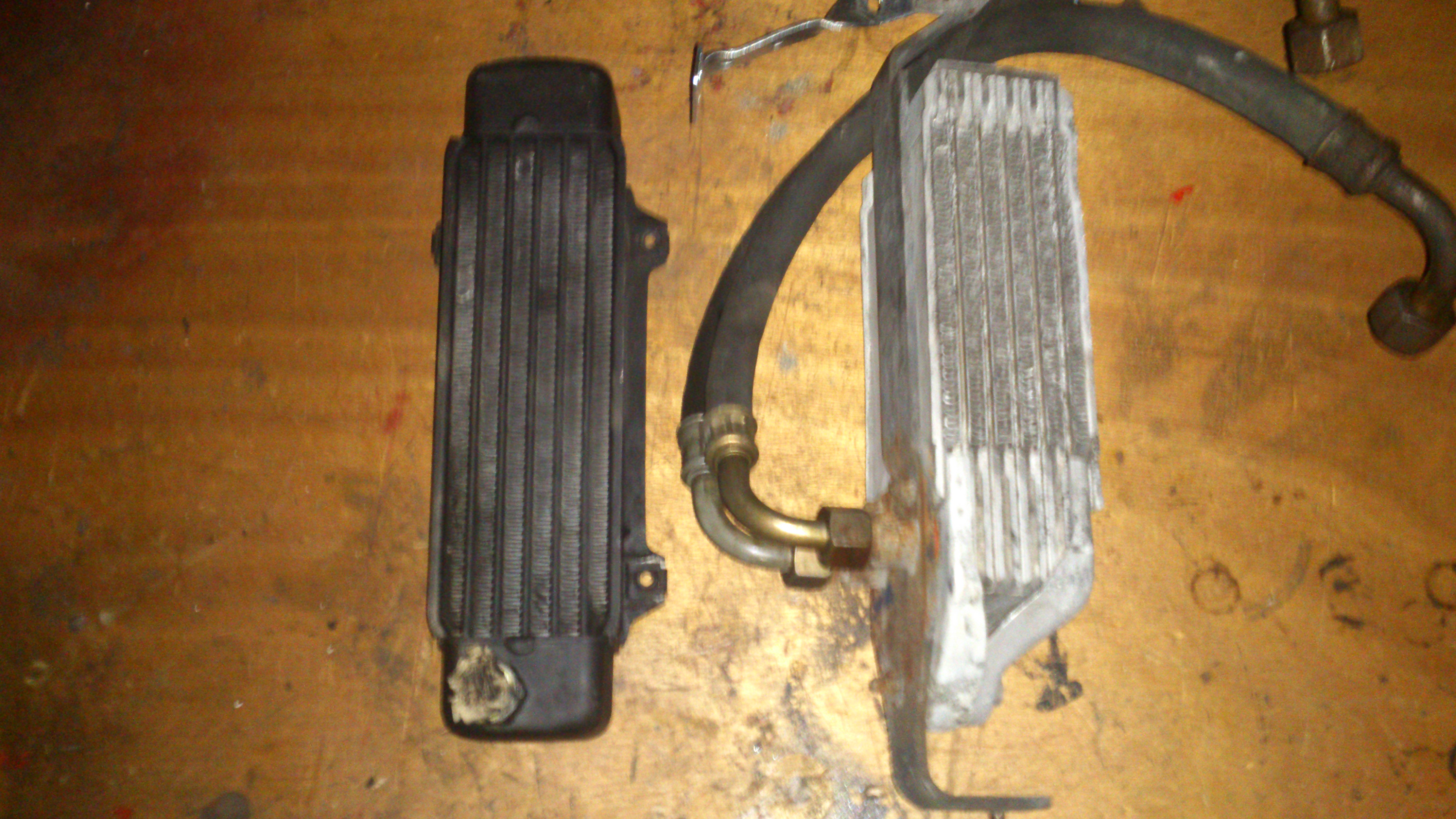 Der vom KG/JY Ist der selbe wie er im 1er Golf und im Käfer verbaut war nur halt mit andern Haltern. Von der Kühlleistung her ist denke ich der vom MC etwas besser, da das Öl auf einer seite reingeht und auf der anderen raus, was bei dem vom KG nicht der fall ist. Der élkühler vom KG ist minim Grösser.
