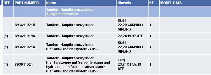 Der 893 611 021 ohne Index ist, deiner Annahme entsprechend, offenbar der Richtige. Das Dumme ist nur, daß bei allen Drittmarktanbietern unter dieser OE-Nummer ein HBZ ausgeworfen wird, wie du ihn anfangs als Falschlieferung bekommen hast. Da wirst du den ATE-Katalog durchforsten müssen :roll: