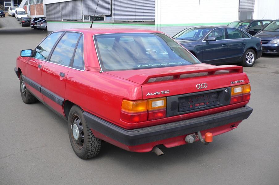 Nun etwas zum Fahrzeug: Bj. 04.1989, NF Motor, quattro, LY3D :-D, AHK nachgerüstet und der Kamei Spoiler (den ich unpassend finde) viel mehr hat er nicht. Erste Hand war ein Audi Händler bis 06.1990 dann der ältere Herr aus dessen Garage er zu mir kam mit einem Km-Stand von 197.000.