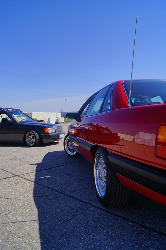 Bei den Rädern gab es kein wenn und aber, seitdem ich den 100 habe wollte ich V8 BBS fahren. Also bekam er den Klassiker in 8x16 mit frisch polierten Betten und 205/50 R16 87V von Falken.