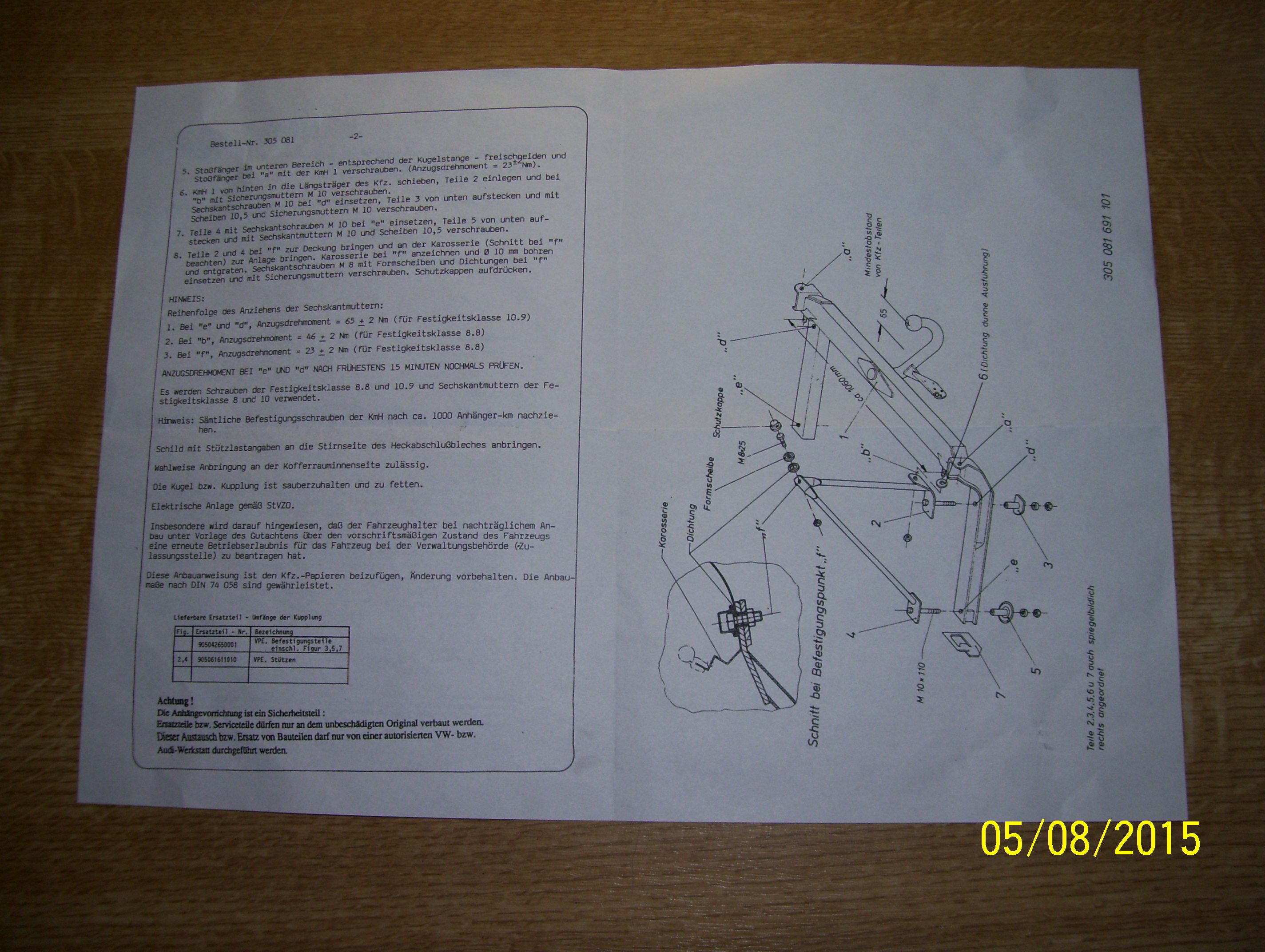 Sodala, ich hab die Westfalia-Anbauanleitung für die Limo gefunden, mit besagten schönen Dreiecks-Stützen.