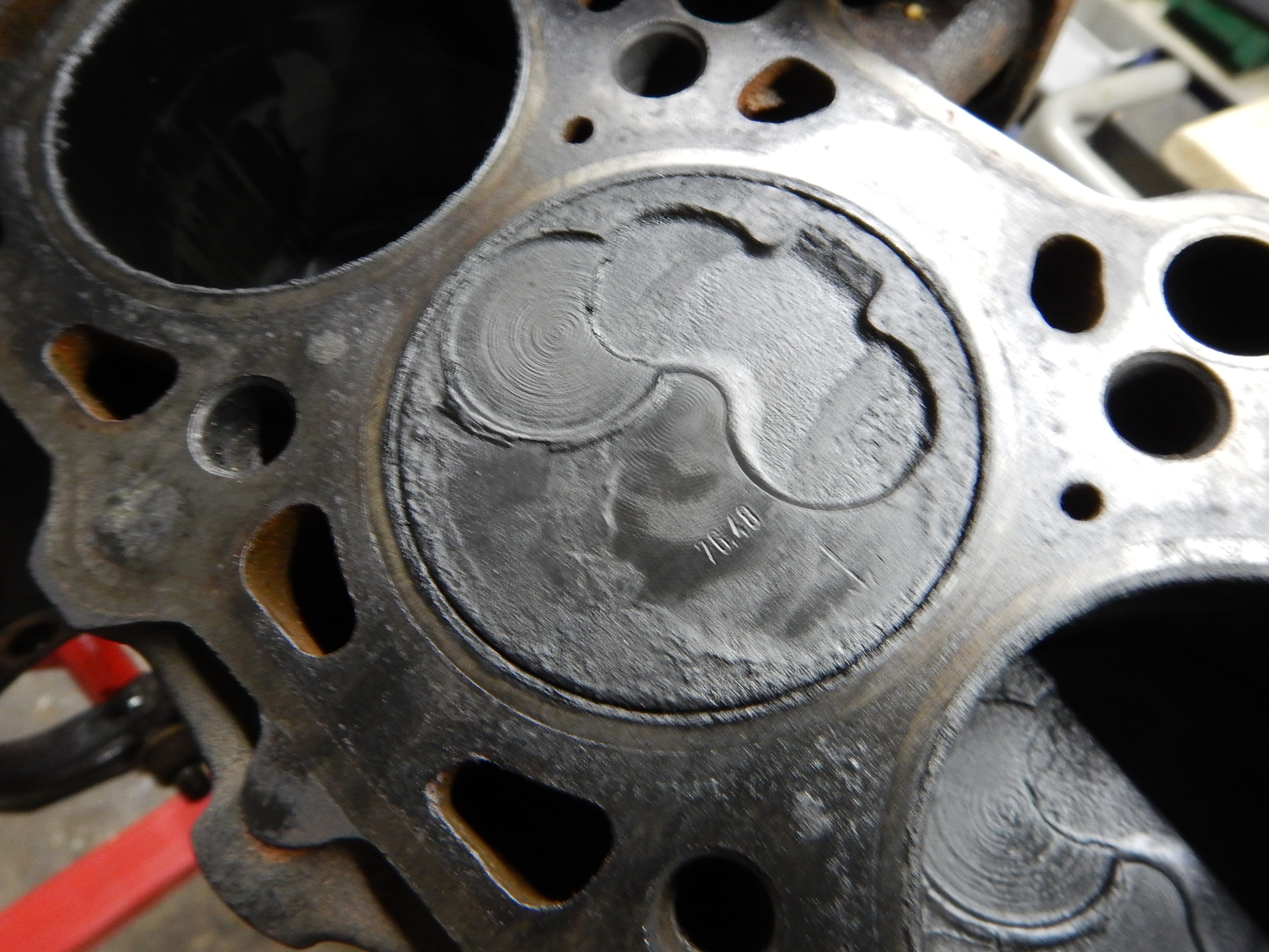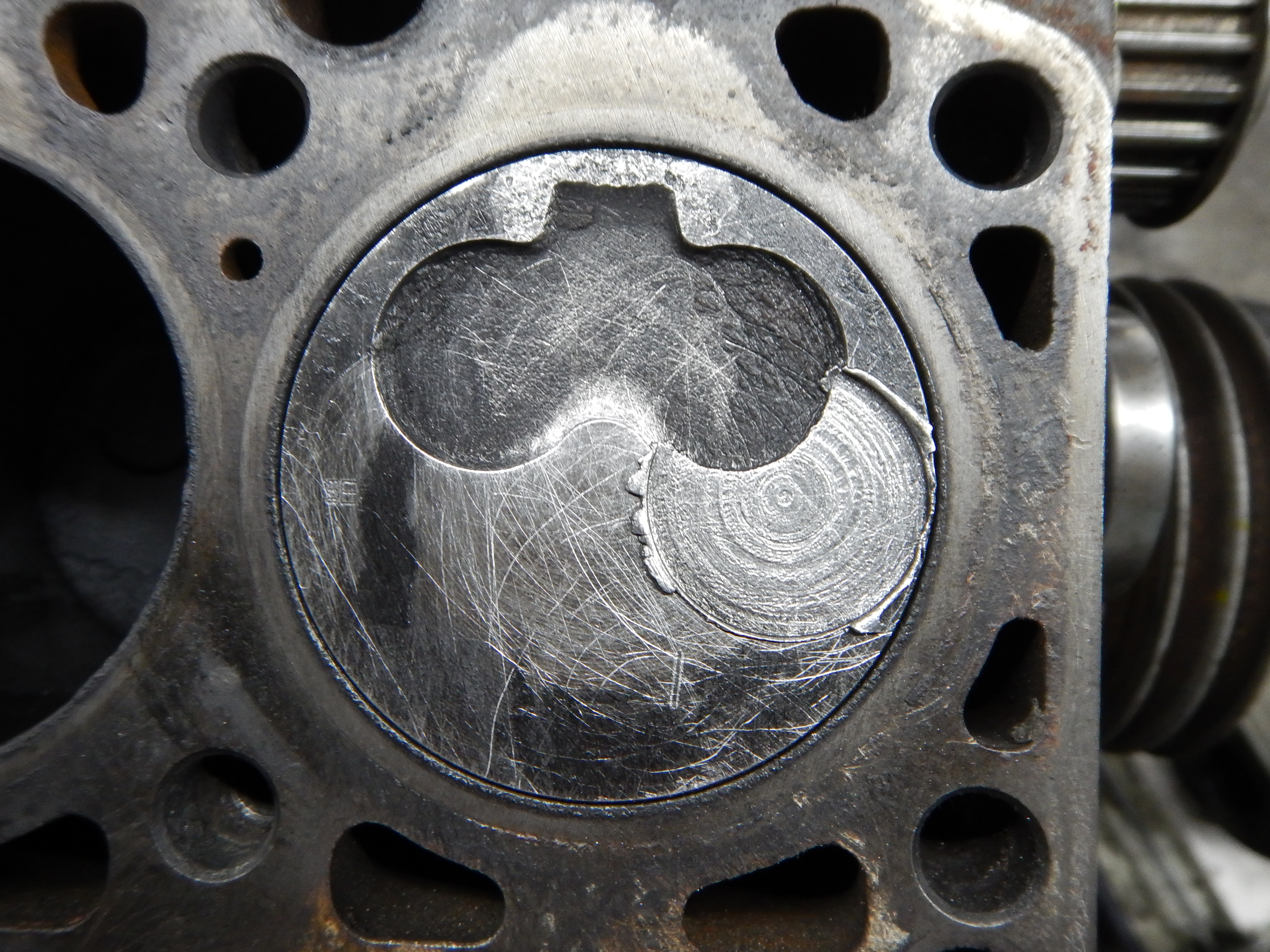 Sieht alles irgendwie zerschmolzen aus - auch am oberen Rand der Zylinderbohrungen vs. Zylinderkopf...