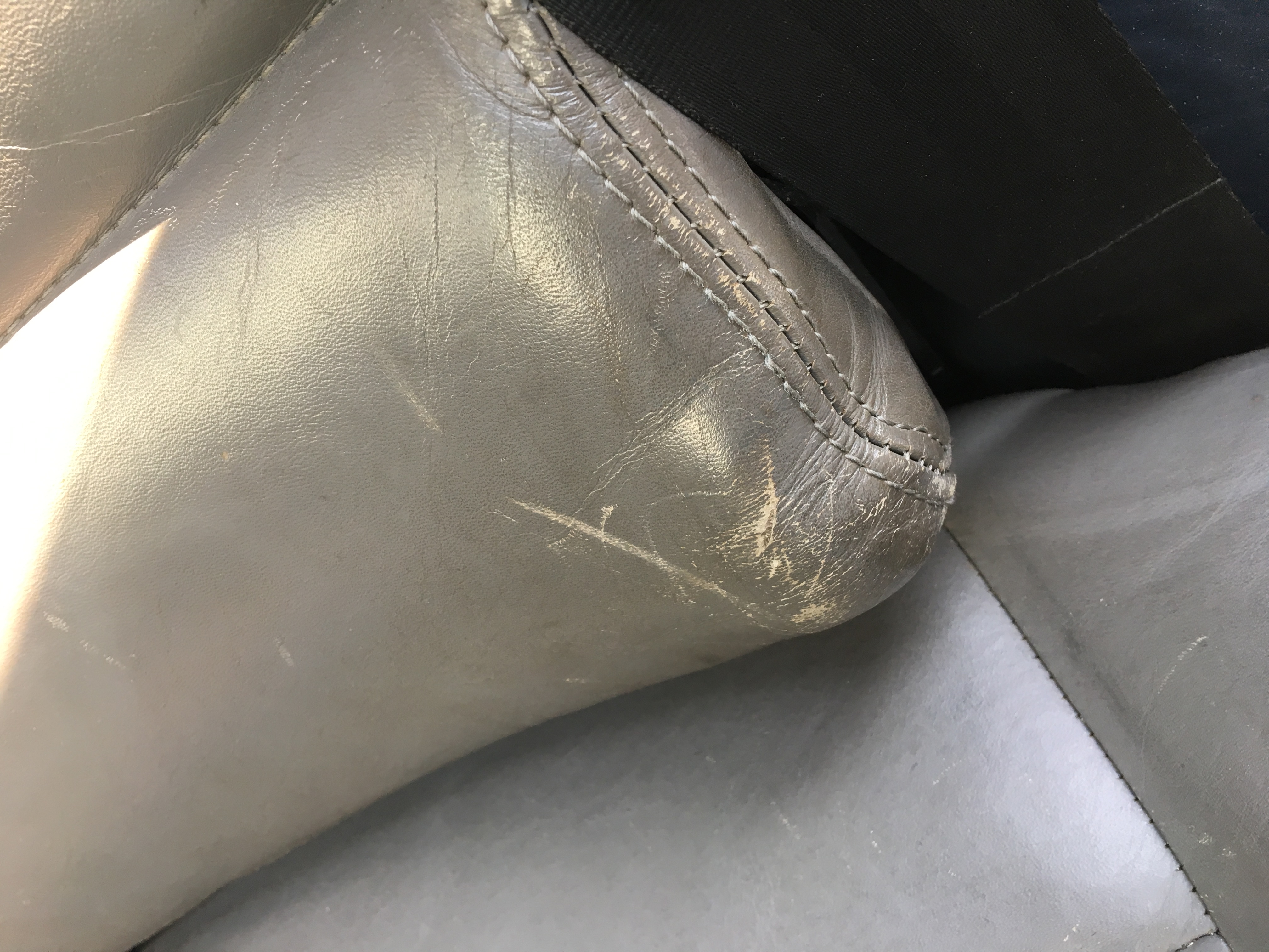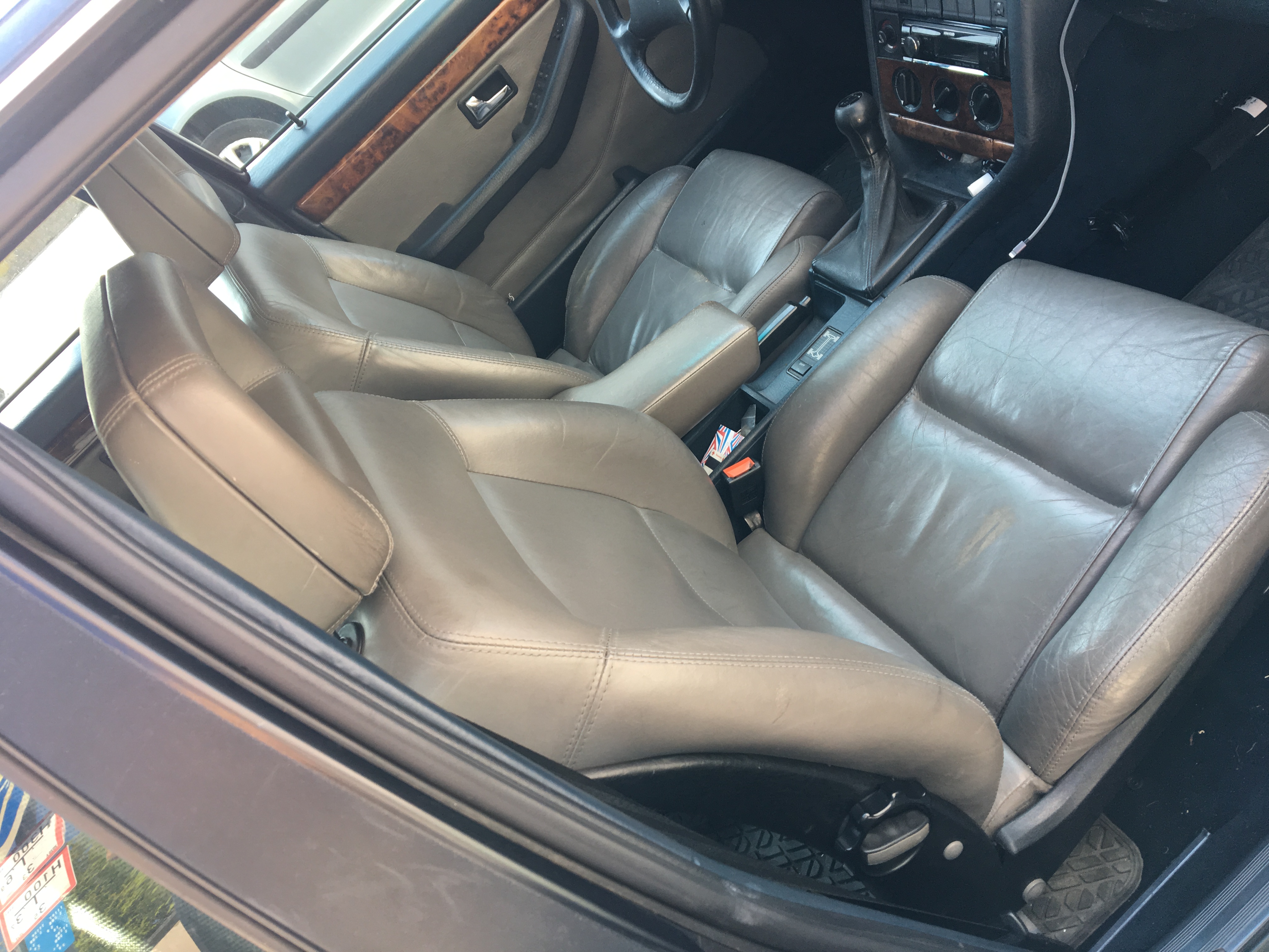 Es handelt sich um die hellgraue Sportausstattung. Weil diese Sitze nicht Original waren, kann man auf dem Etikett im Kofferraum den Lederfarbcode nicht nachsehen, so wie die das hier auflisten: