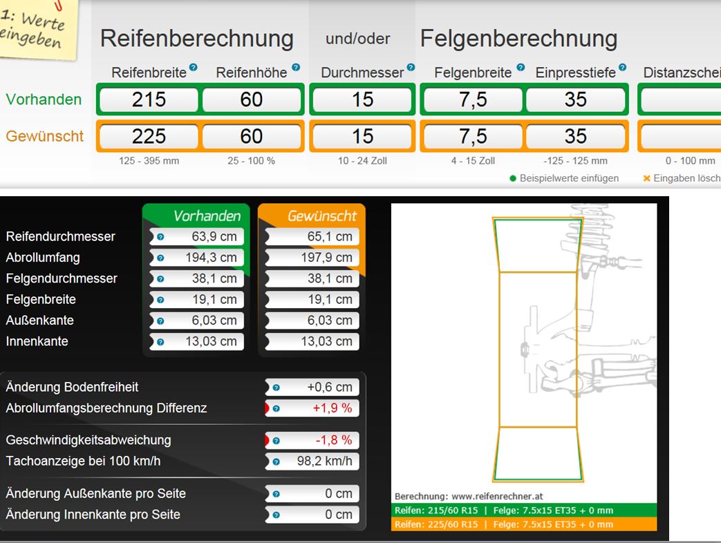 Wenn da bei 215 zu 225mm pro Seite 5mm Breite dazu kommen, könnte es eng werden.
