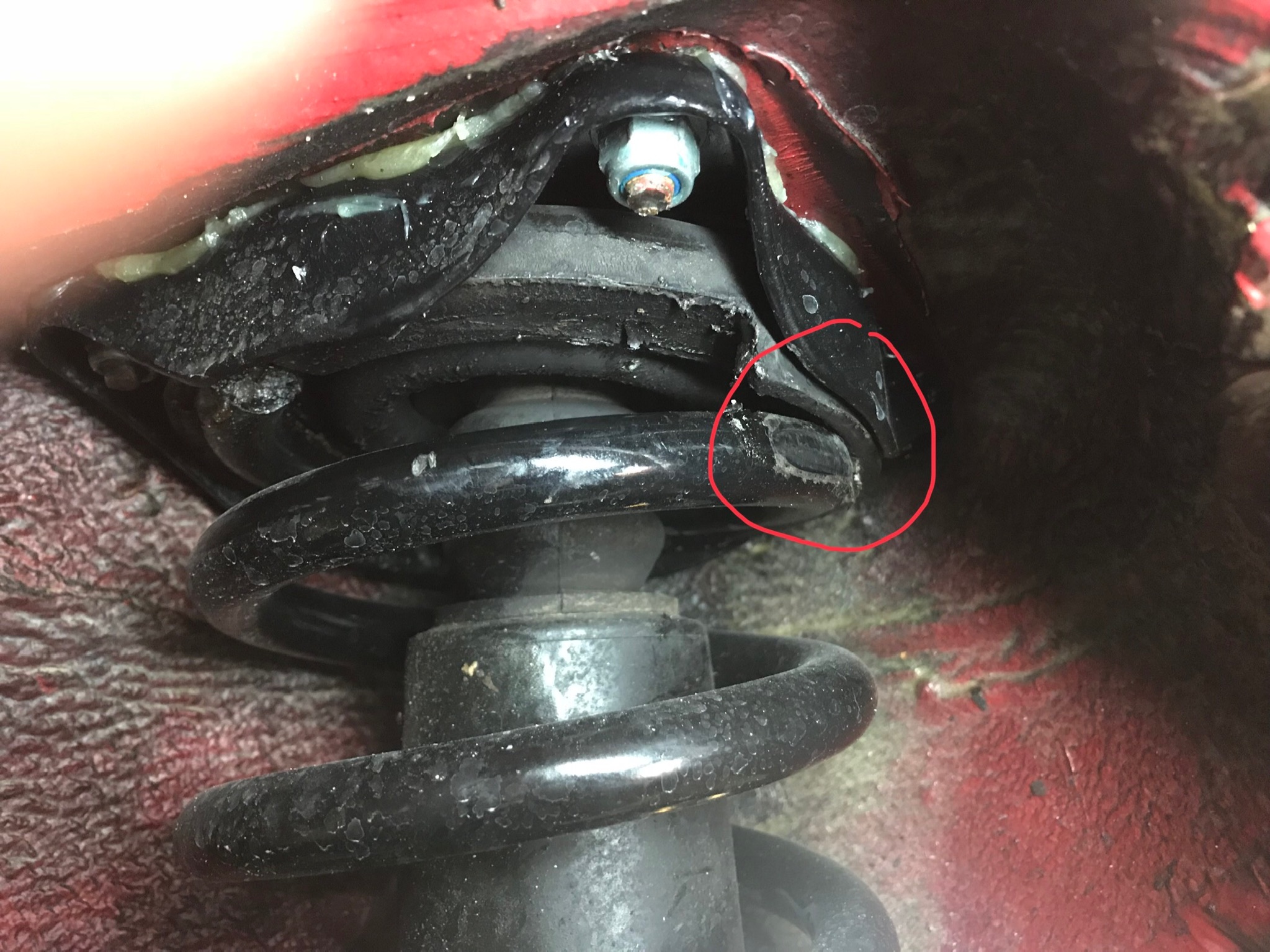 wenn ich das auf Deinem 2. Bild richtig gesehen habe, sitzt der Federanschlag auch nicht richtig im Gummi. Evtl hat sich die Feder durch das Schaben am Domhalter verdreht?