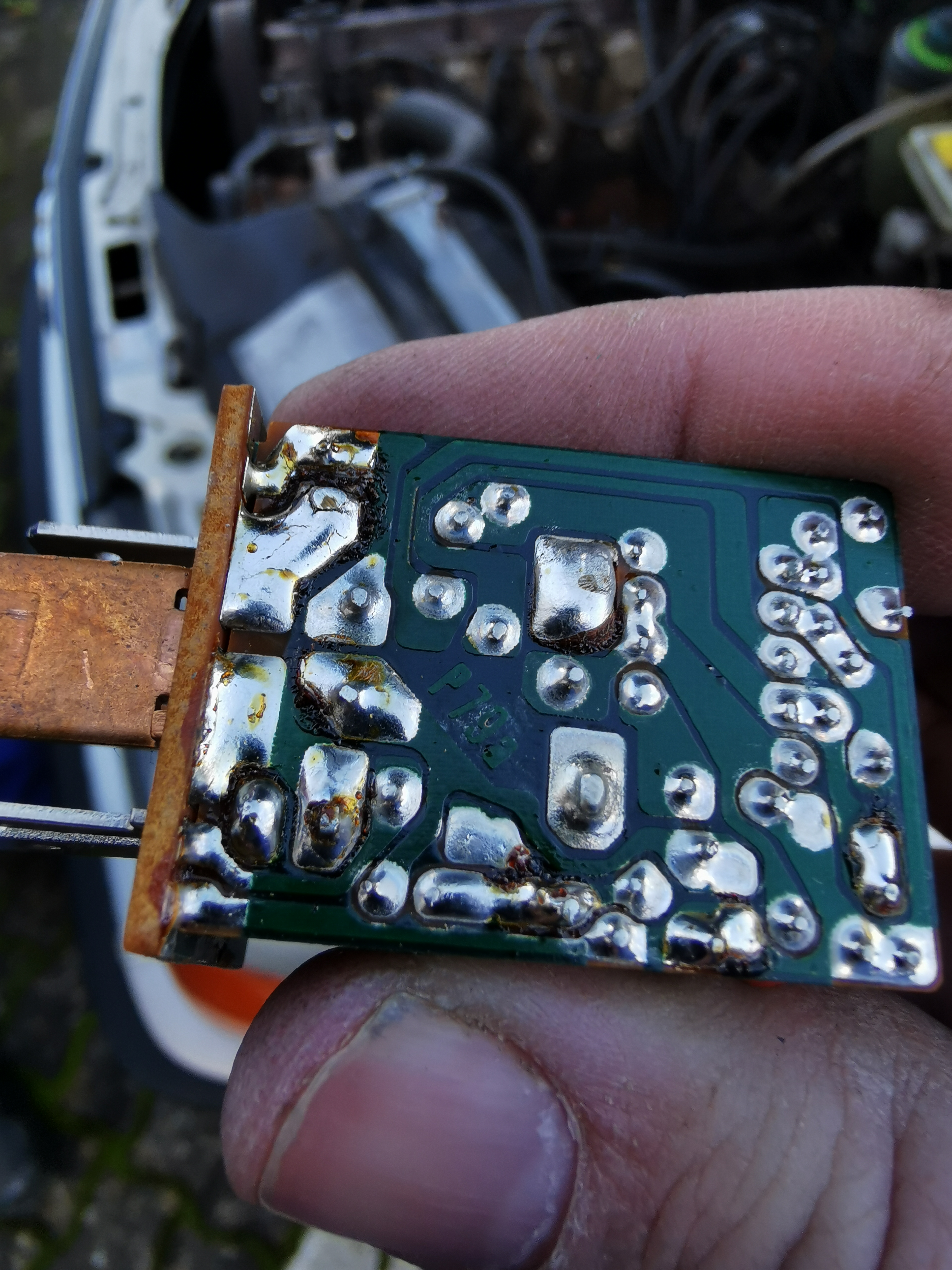 Ich habe ein Foto angehangen. Dort sieht man die Rückseite des Relais. Das sieht doch nicht gesund aus oder?