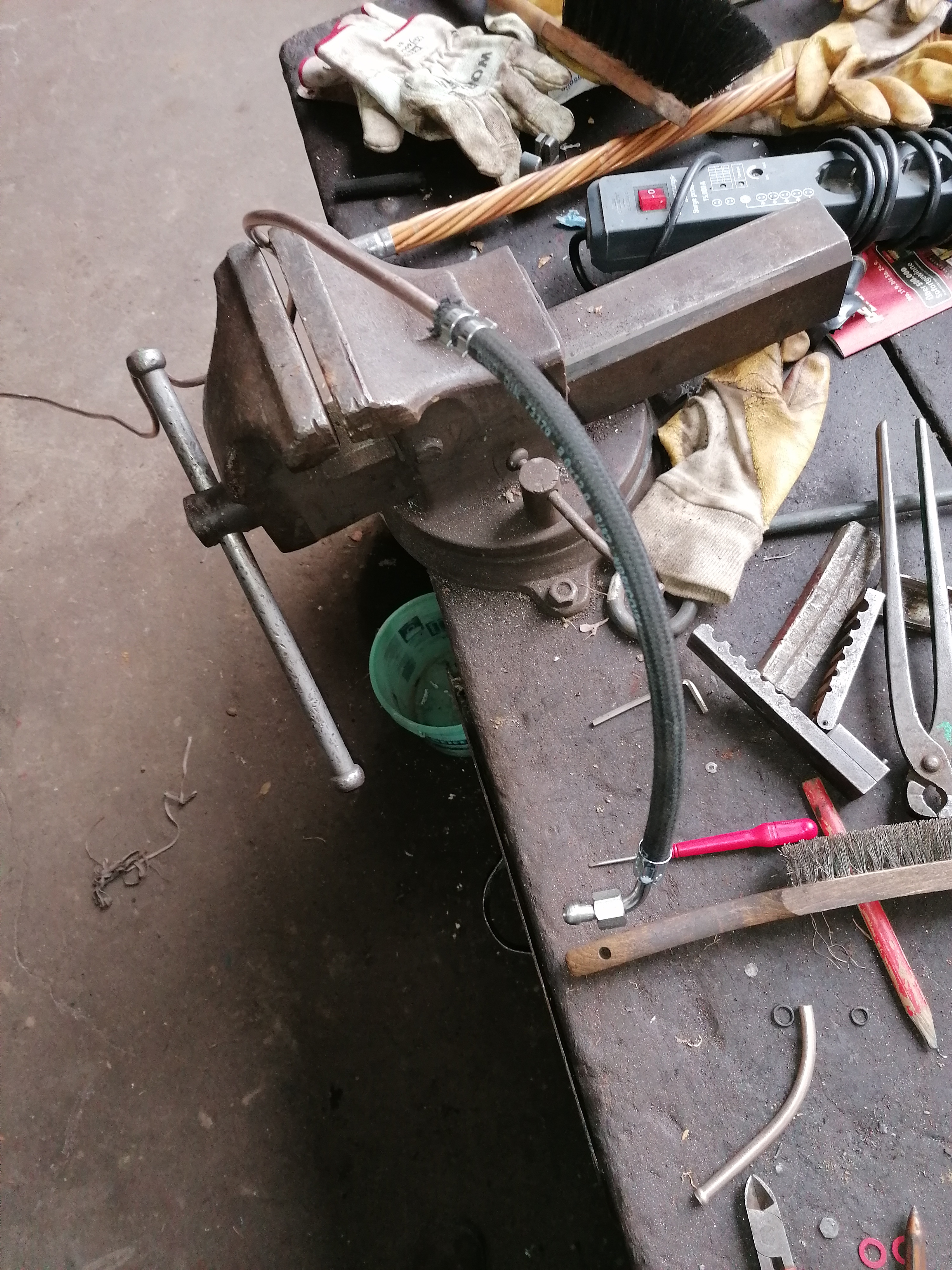 Auf Bild 2 ist auf der Werkbank ein kurzes Stück Rohrleitungen zu sehen. So sieht das Ergebnis mit dem Bördelgerät aus. Sorry, hab leider keine Nahaufnahme gemacht.