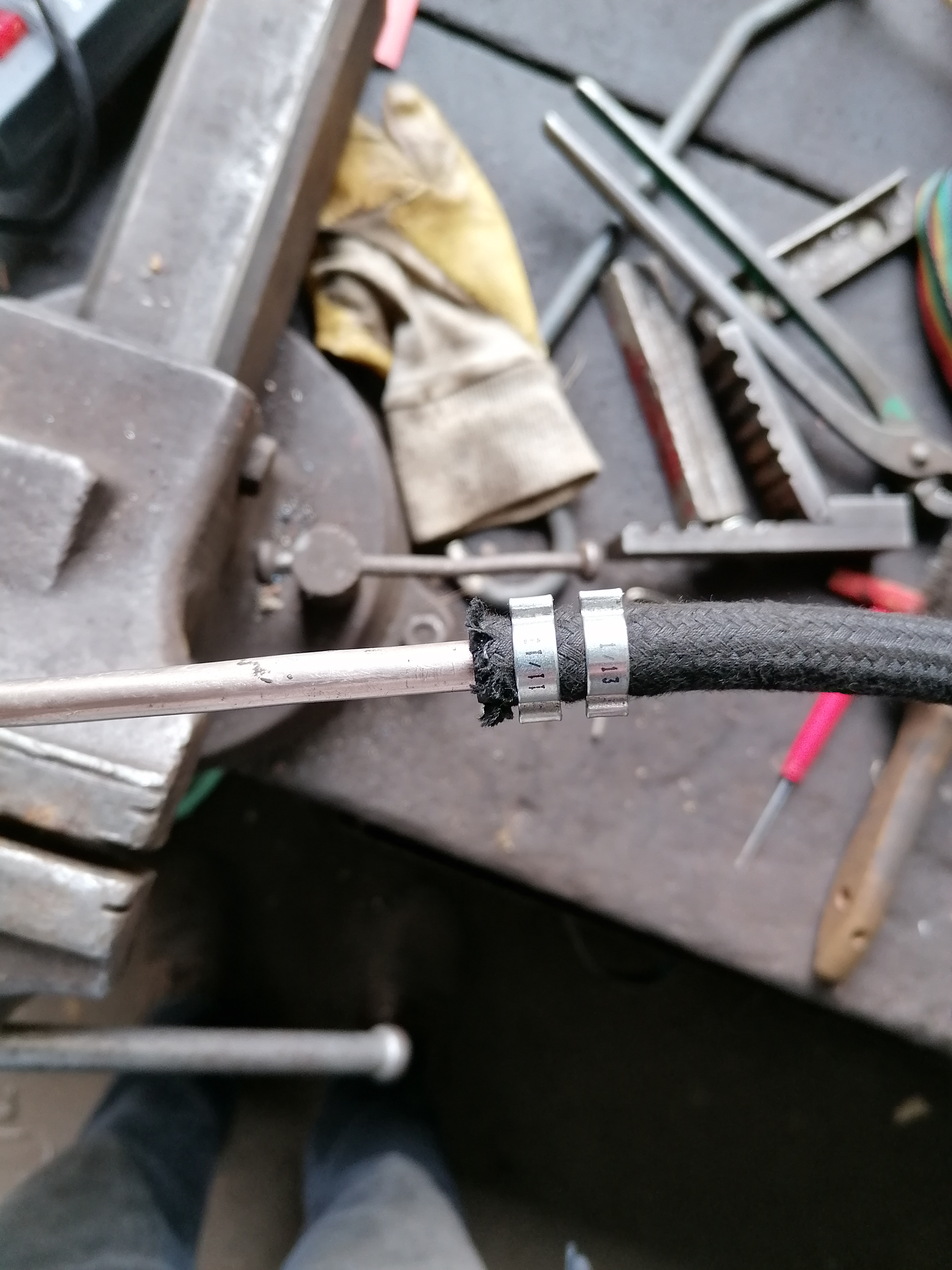 Ich habe alle "Zwischenstücke" vom Tank zu den Stahlleitungen (mit der Zwischenstation Druckspeicher) mit Kraftstoffschlauch nachgebaut.