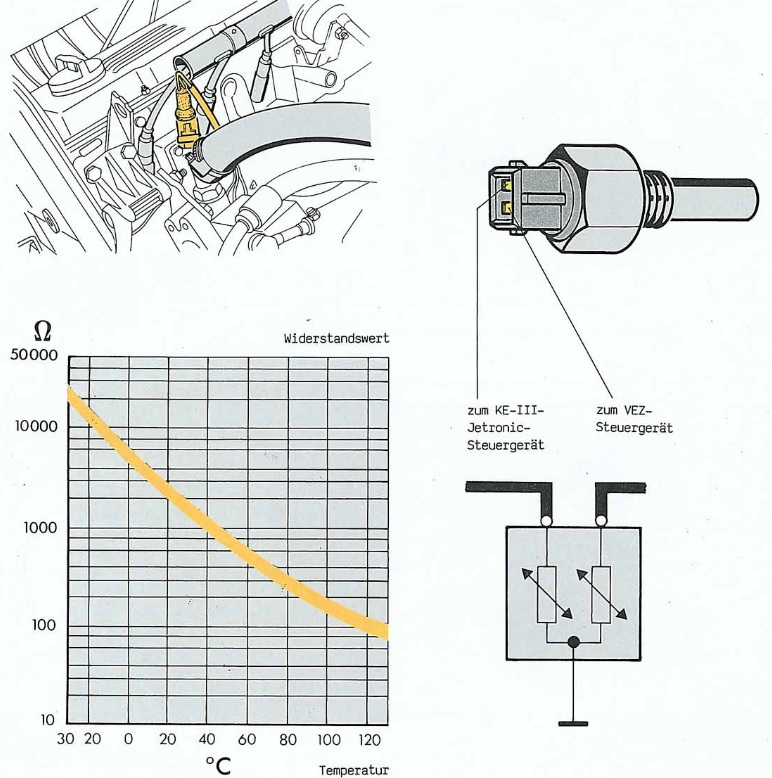 Nun wollte ich dazu mal den Temperatursensor vorn am Kühlwasserstutzen durchmessen.