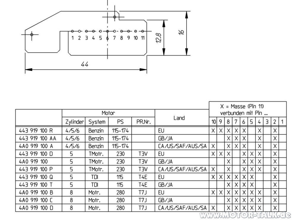 So nach langem warten und suchen, habe ich endlich das passende KI mit dem richtigen Stecker für meinen KU ohne KAT mit K-Jet gefunde. Hier die Codierung.