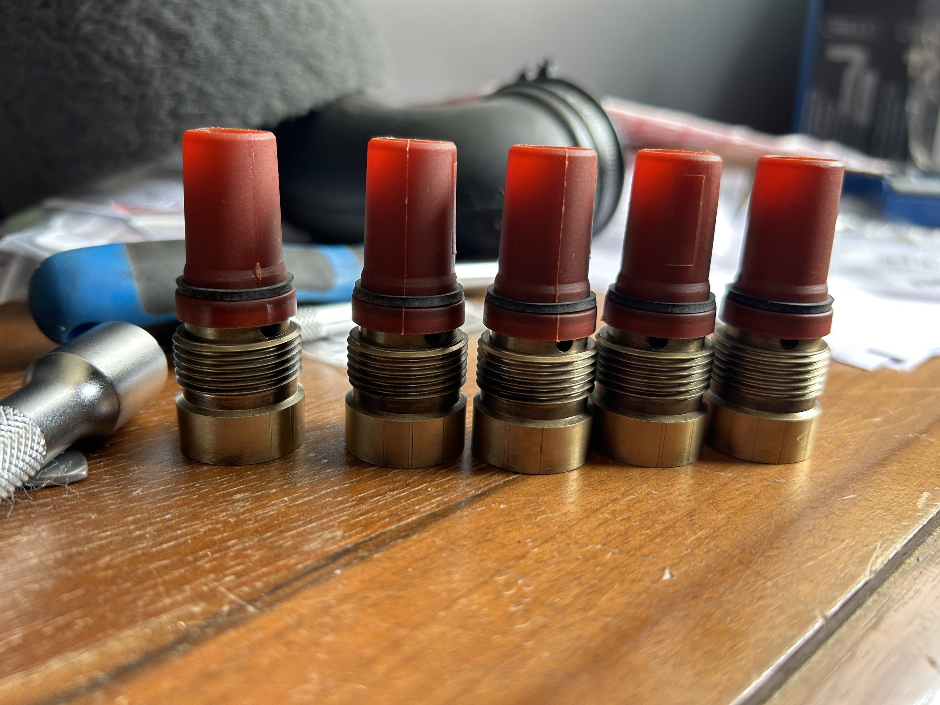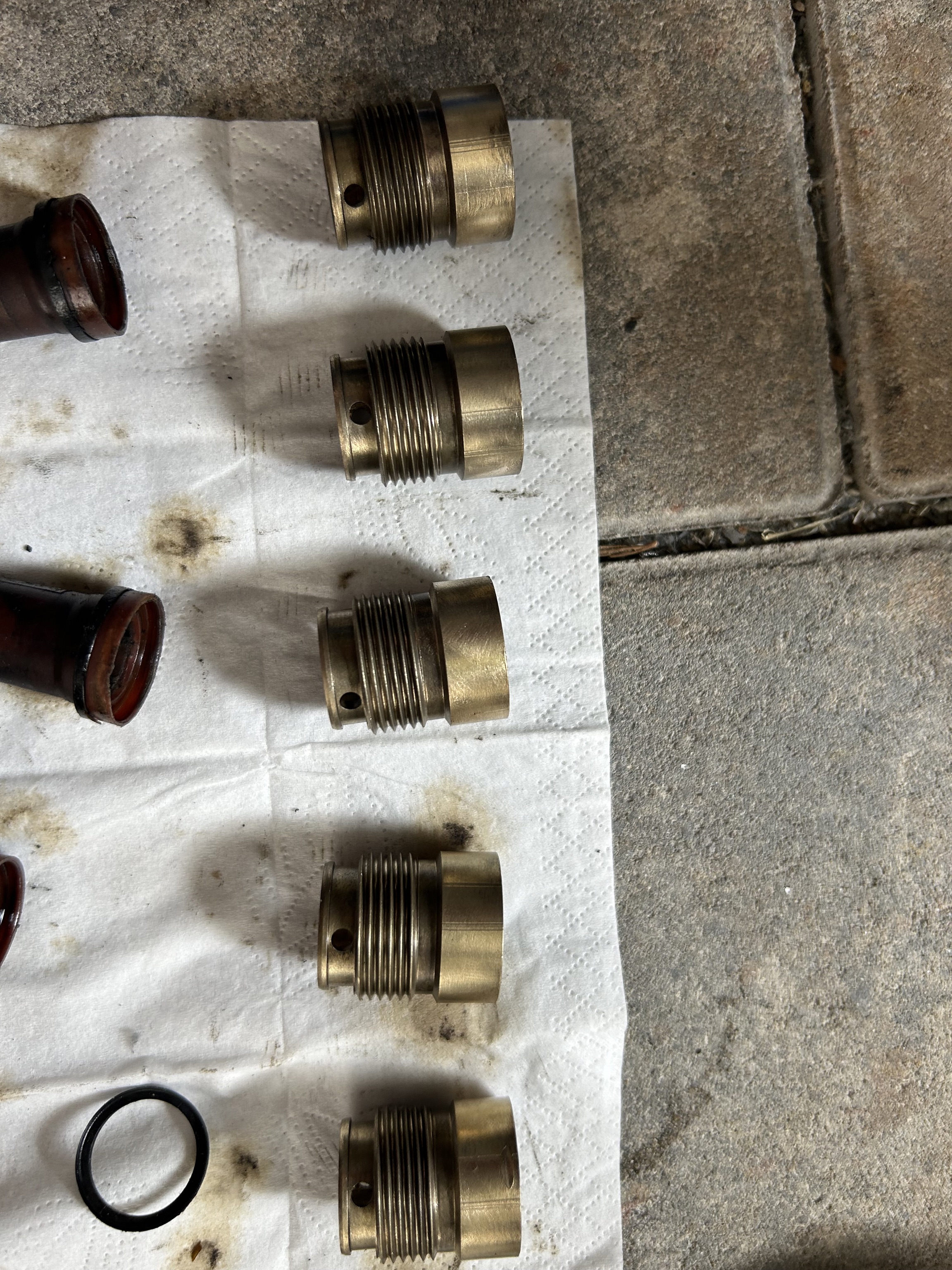 Dazu habe ich alle 5 ESV herausgenommen und neue Dichtungen bestellt und eingebaut. Ich habe das zwar schon mal vor 5 Jahren gemacht, aber da es ja rausgeblasen hat, war das wohl wieder nötig. Leider habe ich trotz neuer Dichtungen, neuer ESV und gesäuberten Messingeinsätzen immernoch extrem Falschluft an den ESV´s. Am meisten drückt es am ESV beim 1. Zylinder raus. Ich habe ein wenig WD40 rangesprüht und dann festgestellt das es um den Messingeinsatz herum rausdrückt, und nicht zwsichen ESV und Messingeinstaz innen. Ich habe davor extra nochmal beim AKTE (*Produktname ersetzt*) nachgeschaut und die Dichtungen welche angegeben sind bestellt, meiner Meinung nach auch nicht wirklich viel.
