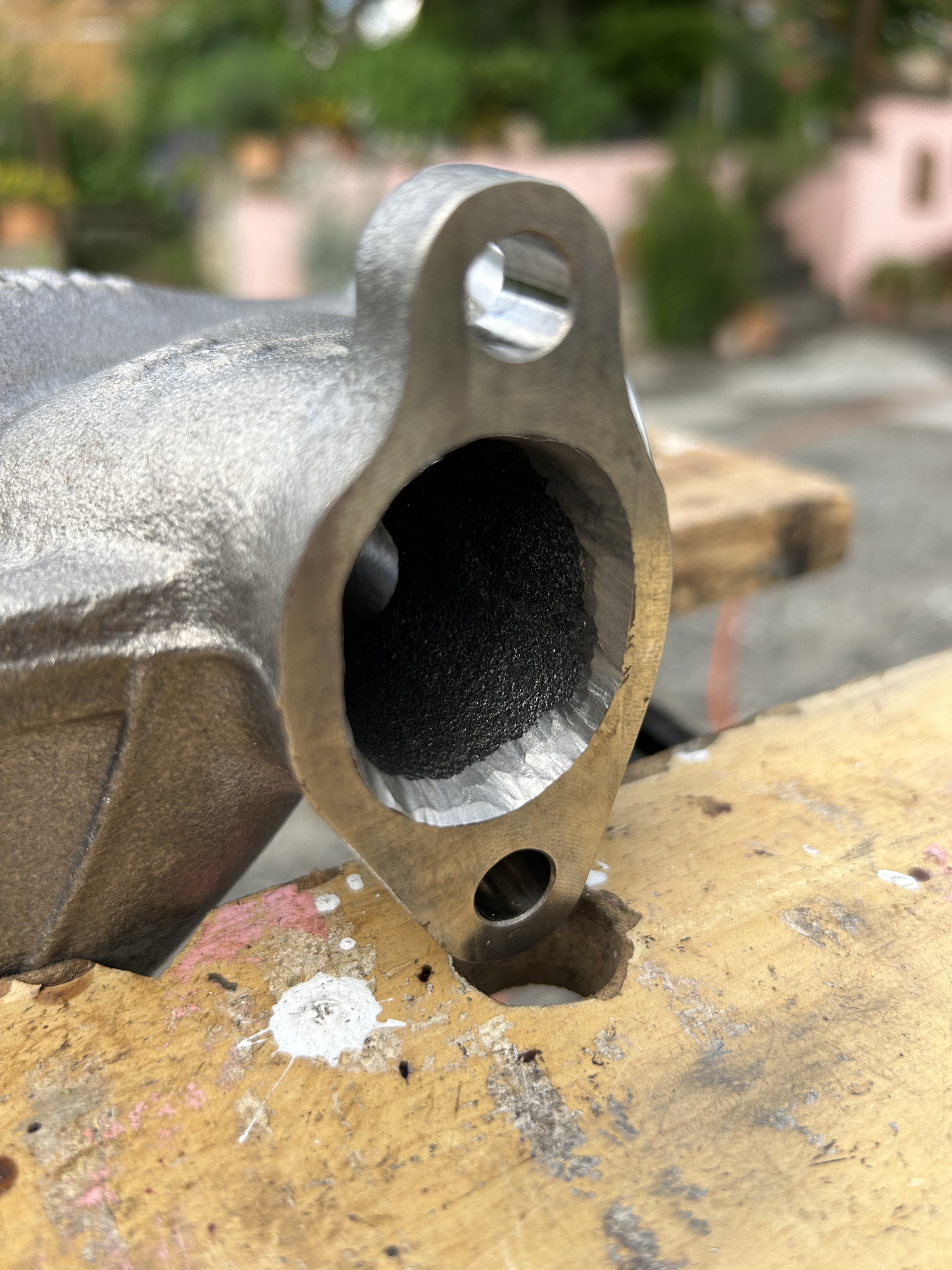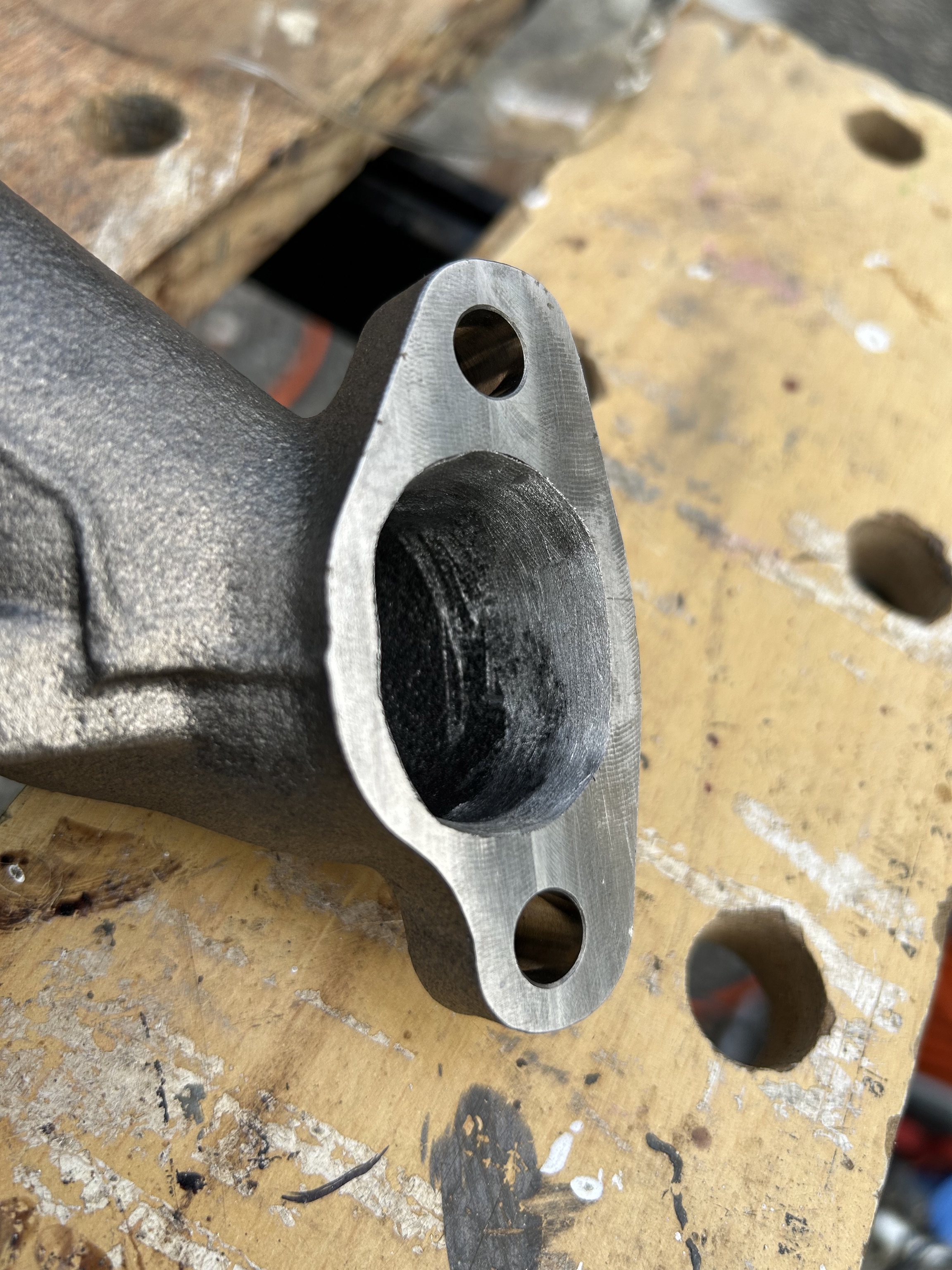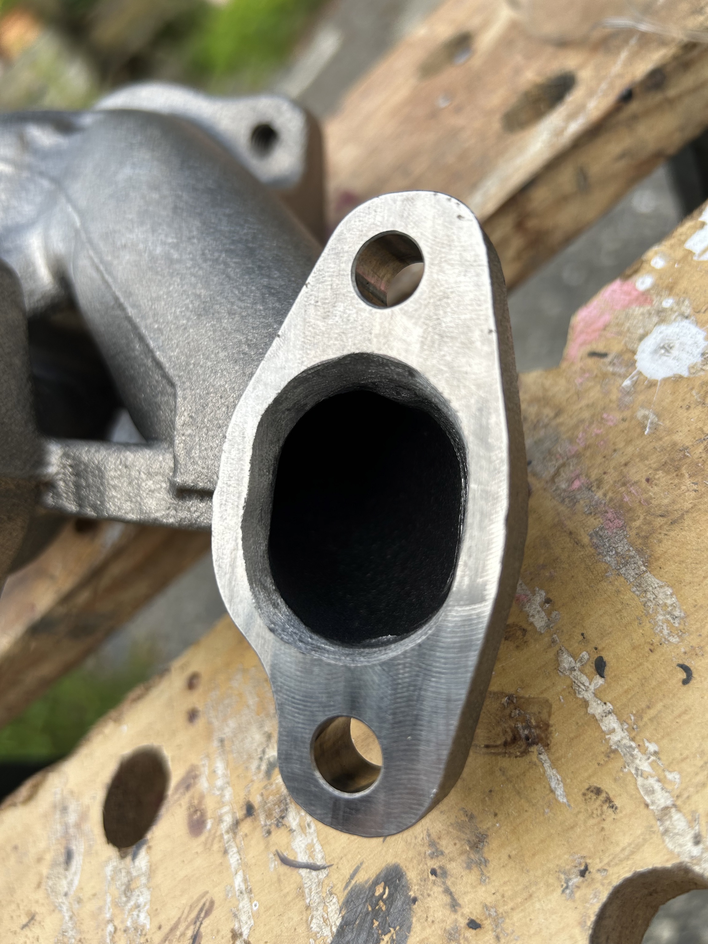 nebenbei noch was anderes, während der ganzen rum schrauberei habe ich mir noch den 2-Teiligen Krümmer besorgt und dessen Einlässe auf Dichtungsmaß geweitet und danach etwas glatt geschliffen.