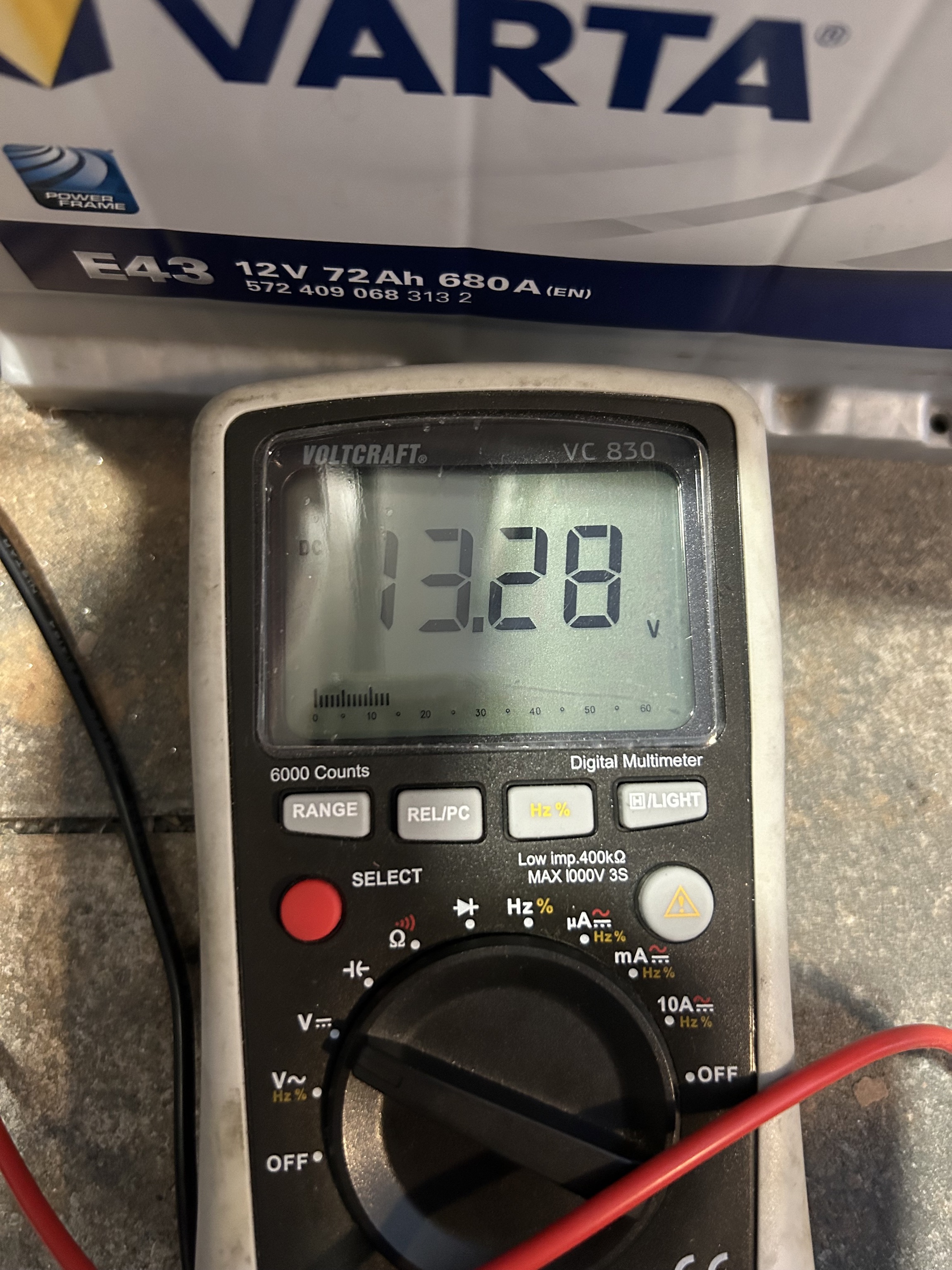 Spannung der Batterie während das Auto läuft ist bei ca. 13,1-13,5V also relativ ok.