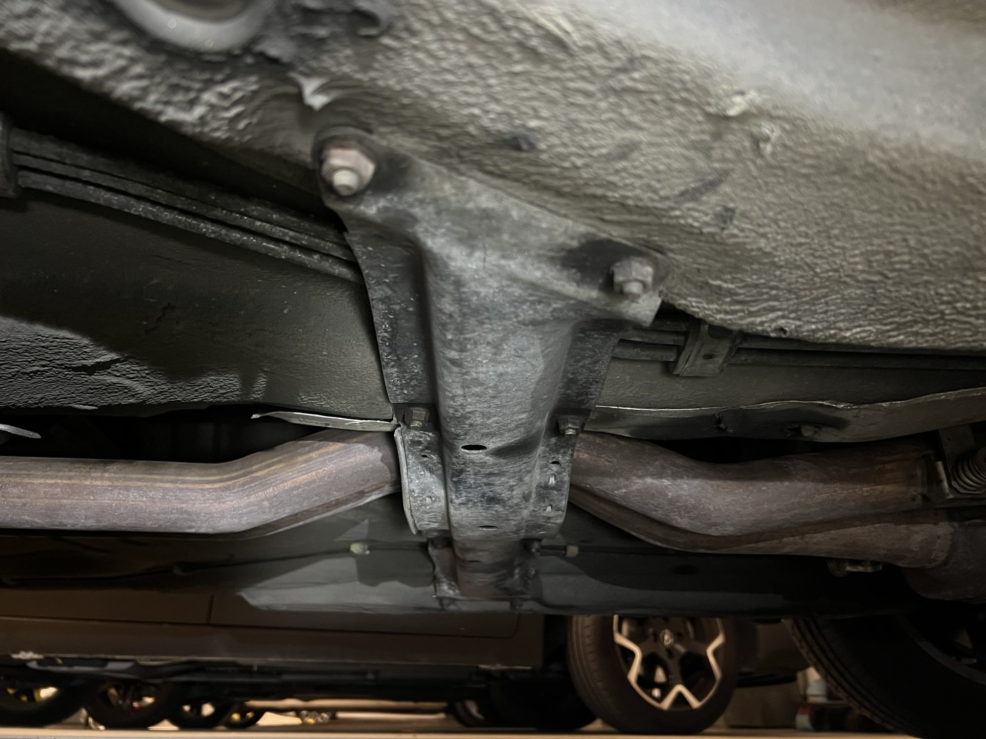 Bin etwas verwirrt bzgl. des "arbeitslosen" Schraubbolzens. Normalerweise ist das der äußere Schraubpunkt der Querversteifung. Diese Querversteifung fehlt. Dafür ist ein zusätzlicher Längsträger am Bodenblech zu sehen???