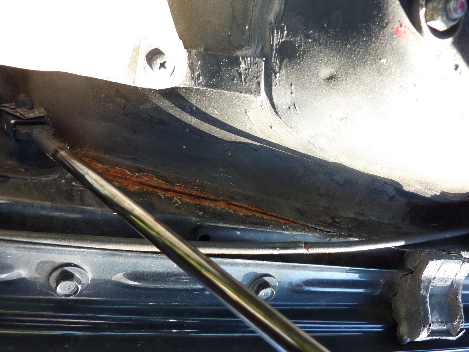 Die Tülle fehlt oft, ihr Blechrand ist rostig und/oder der Längsträger darunter ist auch rostig.