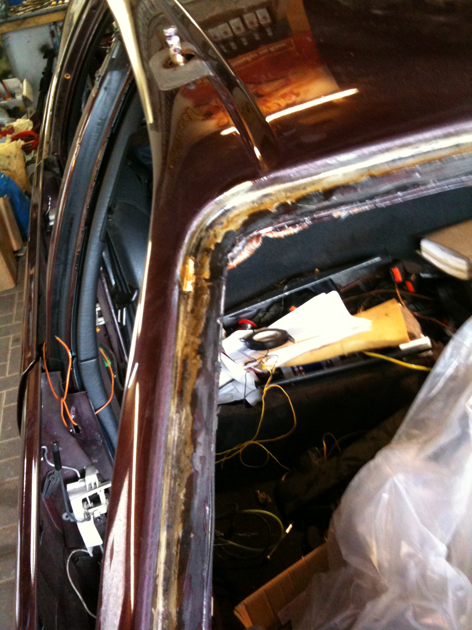 Oben am Dach, wo ich mit rost gerechnet hatte, war dazu im Gegensatz sehr wenig rost! Die Typischen "Heckprobleme mit Rost" ... Alles NICHT durchgerostet... somit hoffe ich, dass der Lackierer da unproblematisch was draus macht!
