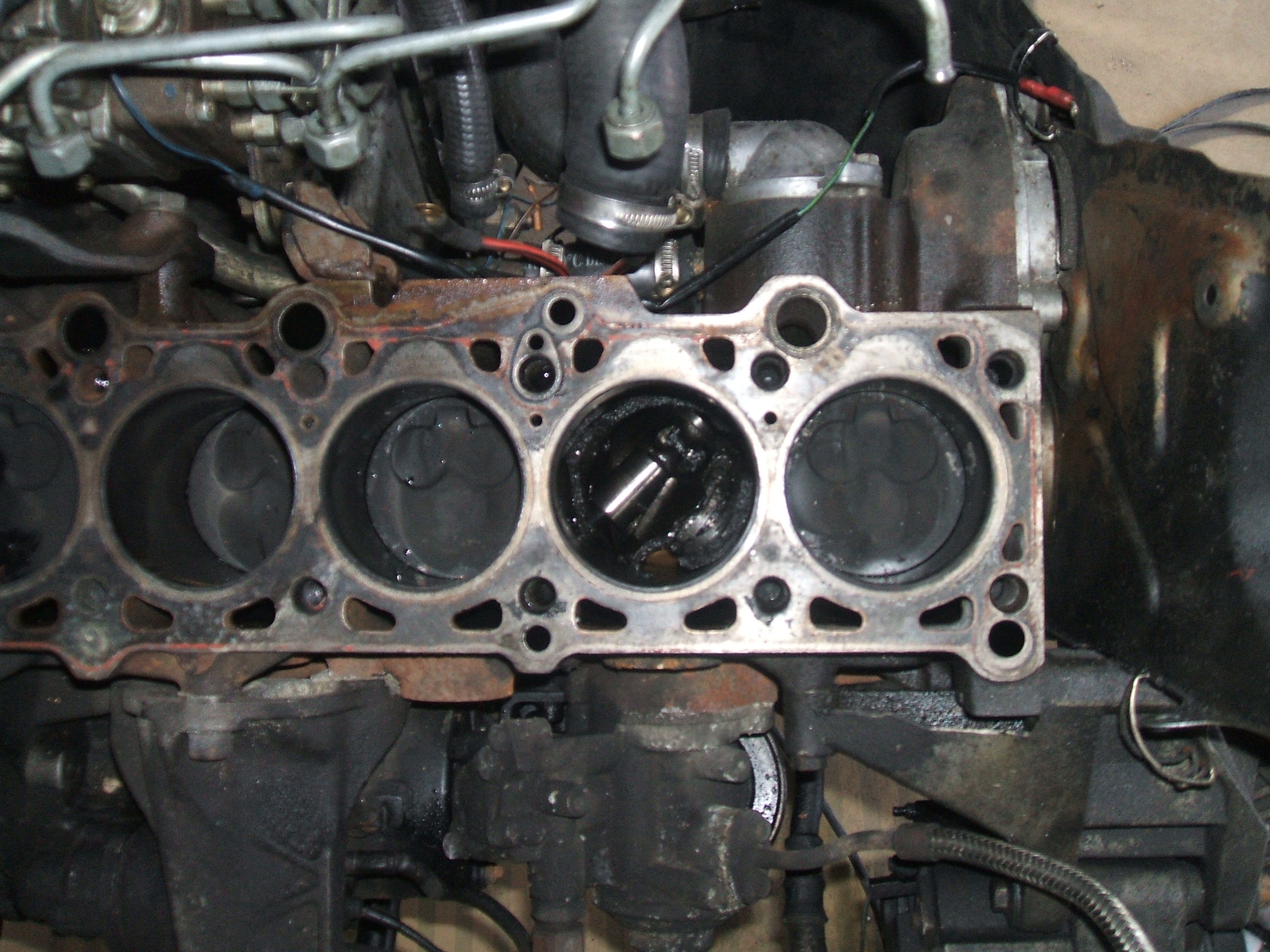 hier mal Bilder von dem Motorschaden(alter DE-Motor), der Kopf hat's dann auch hinter sich...: :evil: