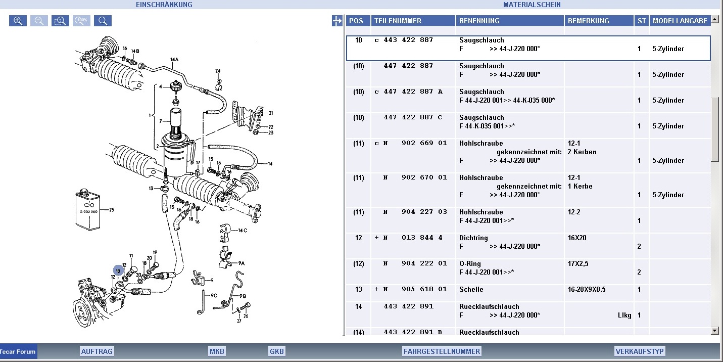 In der *AKTE* sind 4 Schäuche für den 5Zylinder angeführt. Kann mir jemand sagen, welcher der richtige ist?