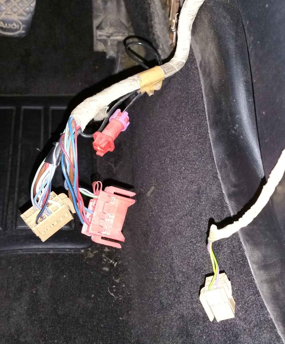 Sieht aus wie die Stecker für die Beleuchtung im Fußraum....