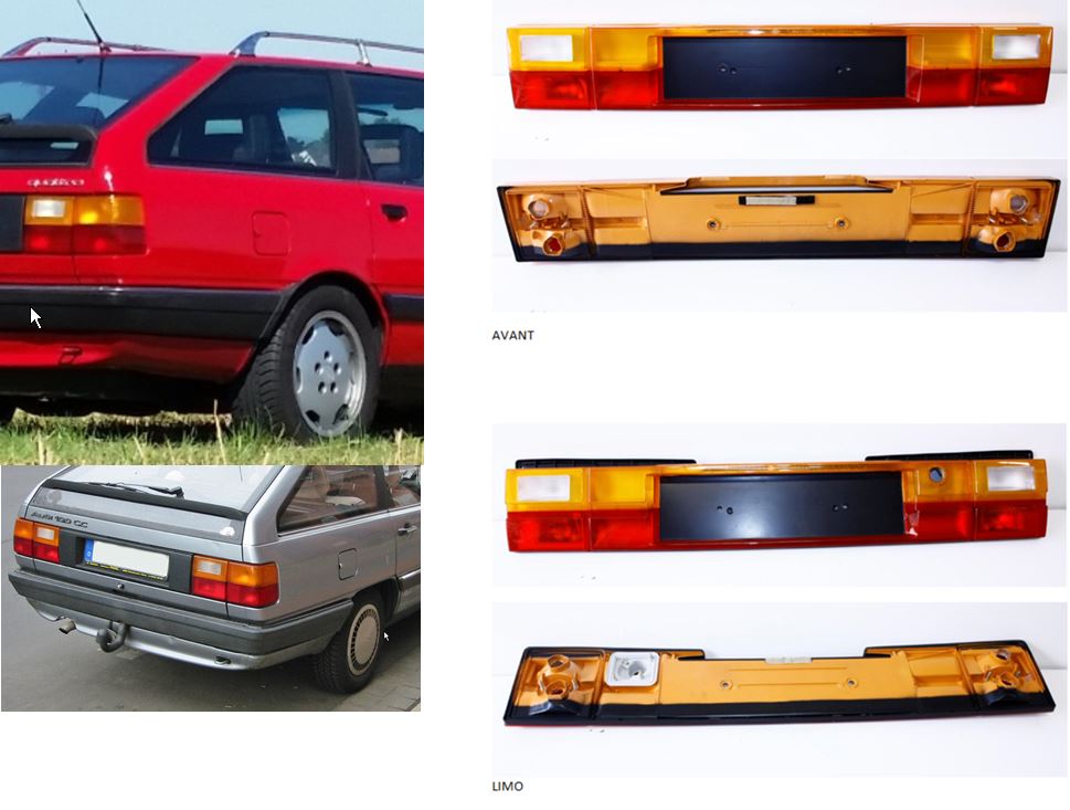 die Limo hatte immer Rückleuchten mit Sicke. Die inneren Lampen passen nicht ohne Nacharbeit an den Avant ! Wenn es rote oder schwarze Rückleuchten am Avant werden sollen, haben die immer die Sicke