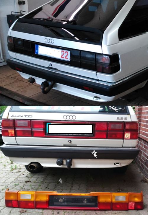 Danke für die Info. Ich möchte die Rückleuchten, die der 100er normal drin hat, gegen die roten tauschen. So wie es beim Sport gemacht wurde. Das Ding mit dem Nummernschildhalter soll in schwarz bleiben.