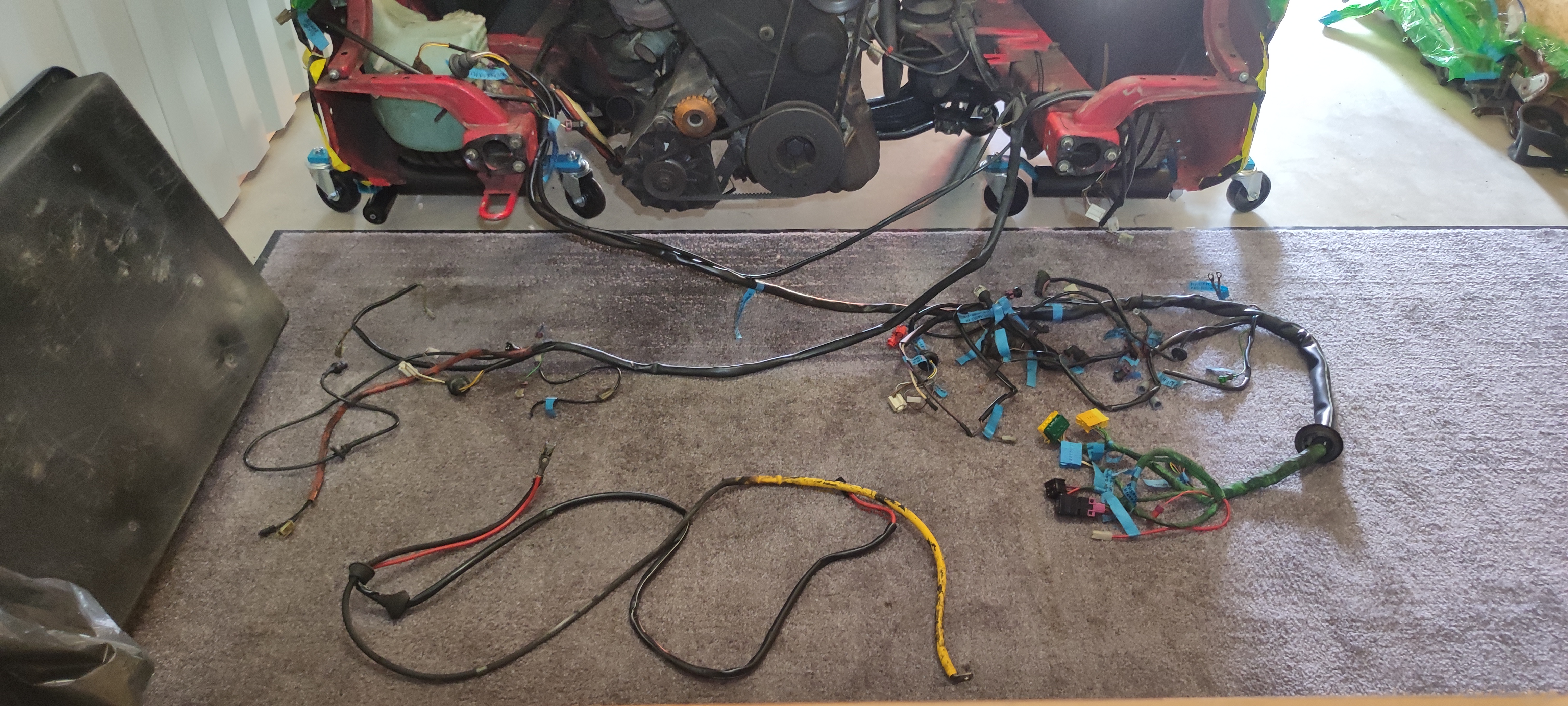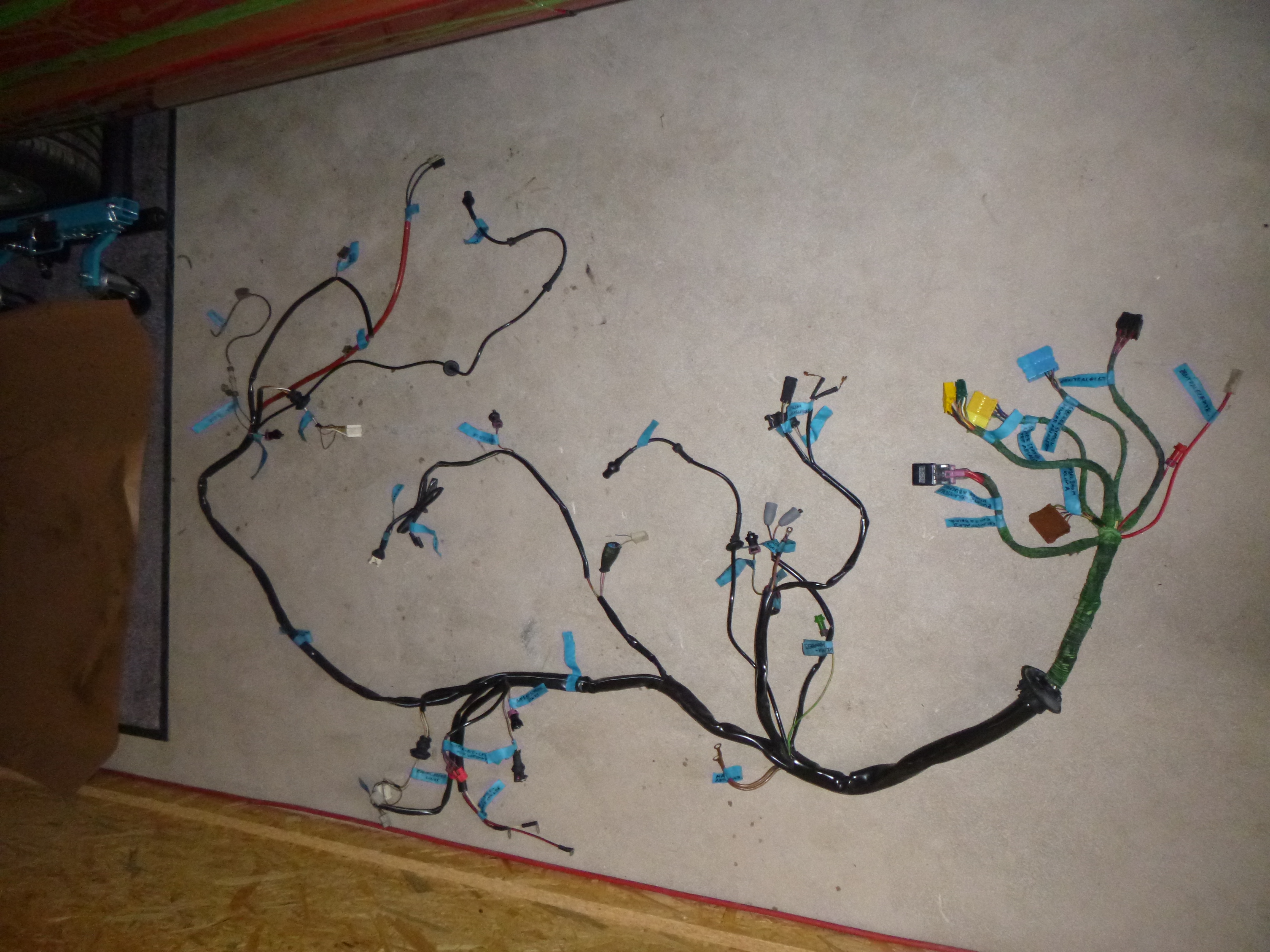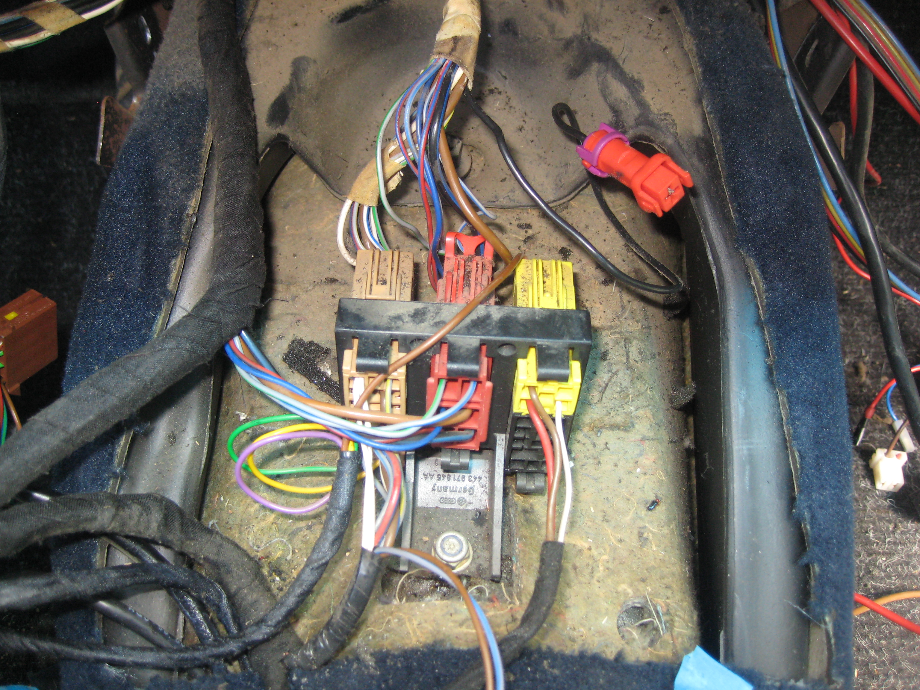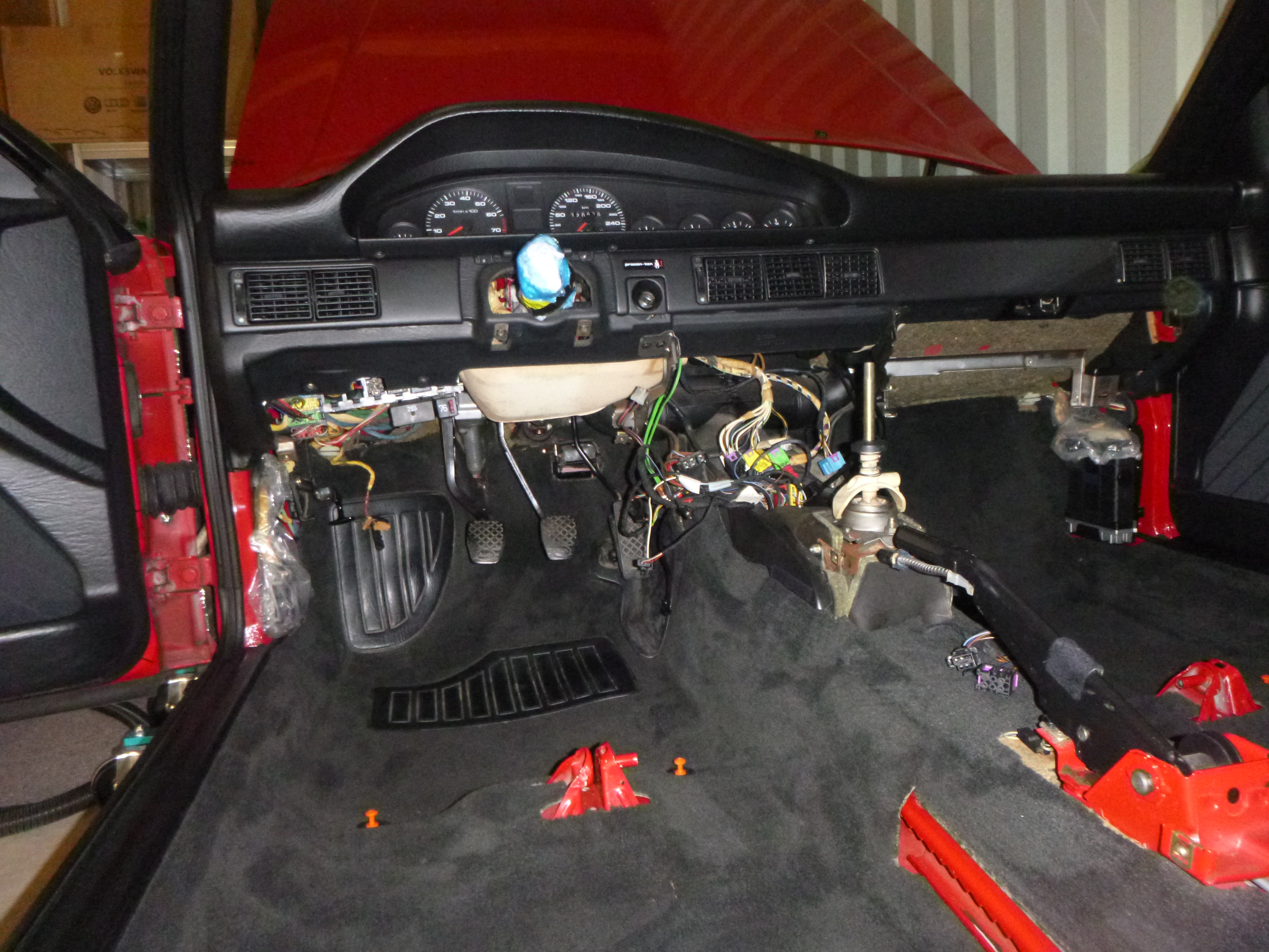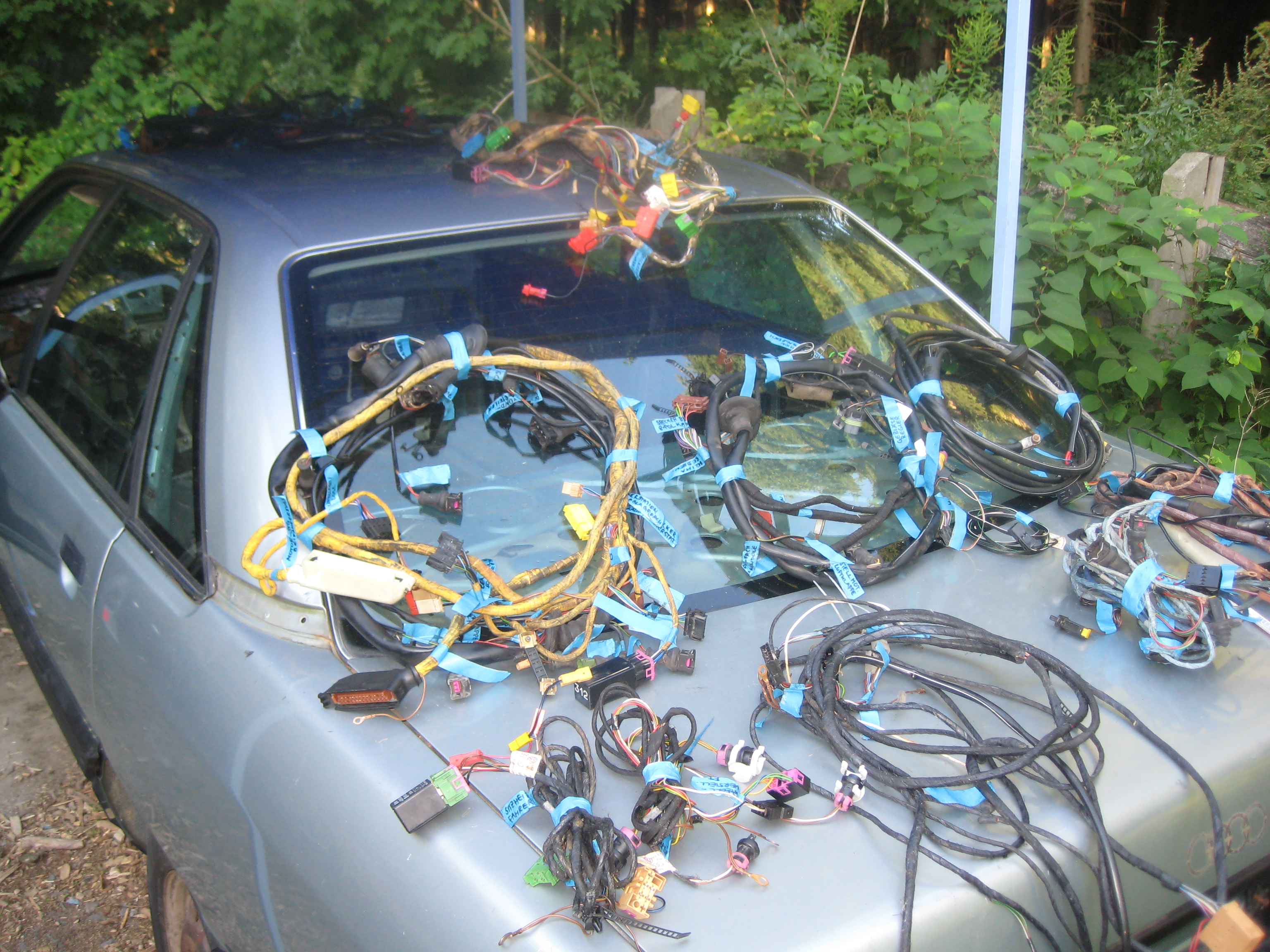 3. Schritt: Armaturenbrett beim Teilespender ausbauen, Kabelbäume beschriften, Details originale Kabelverlegung fotografieren.