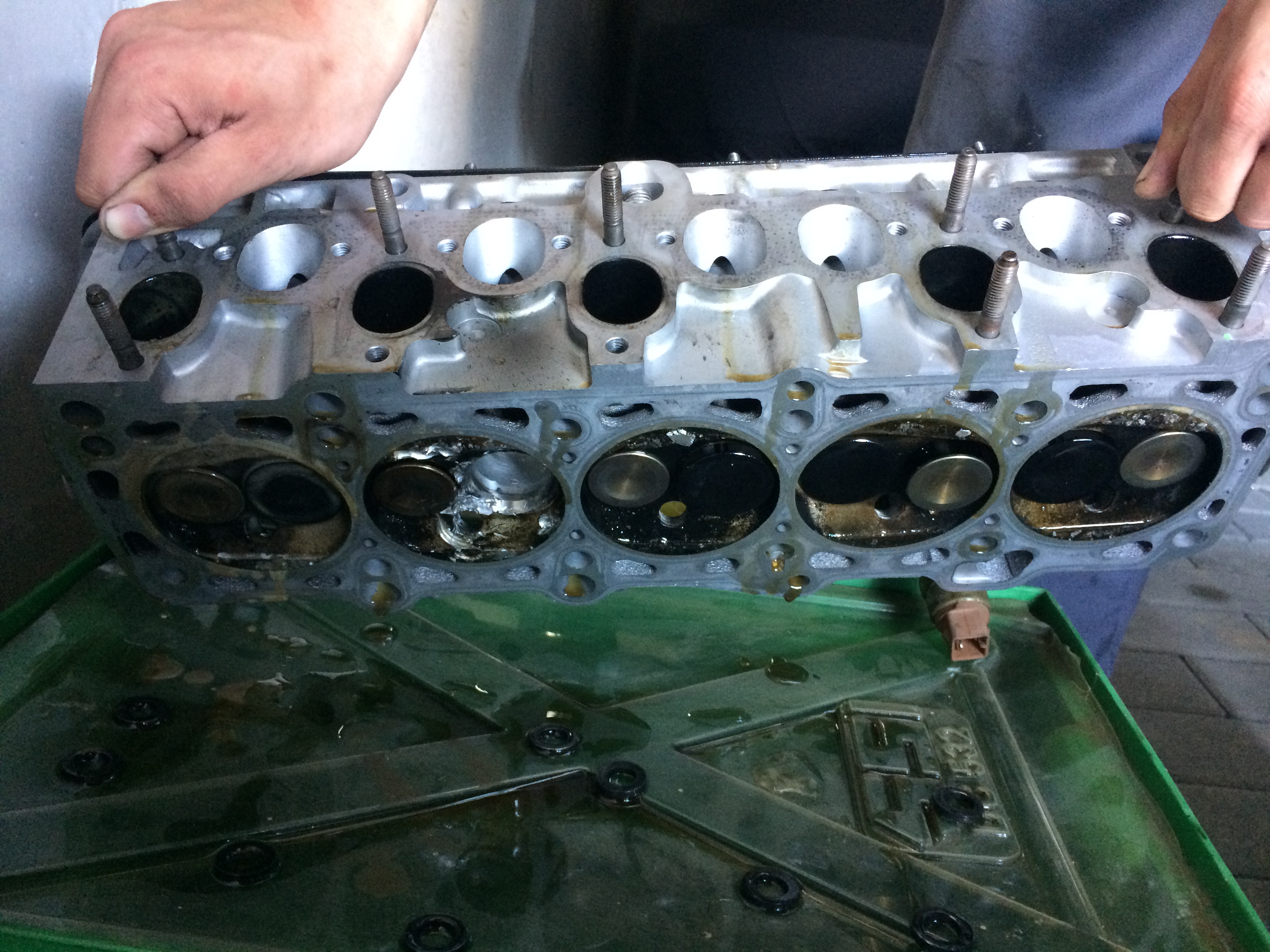 Ventil Zyl 4 ist im Brennraum einmal gefaltet worden. Die Überreste lagen sogar noch im Saugrohr zum Zyl 5 usw. was sehr komisch ist, in allen Zylindern steht das Wasser bzw Wasserschlamm. Warum?? Kopfdichtung? Warum dann in ALLEN Zylindern? Und warum reißt ein Ventil ab????